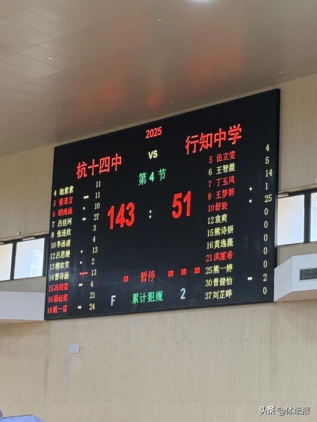 中國中學生籃球錦標賽每年舉辦一屆,代表了國內中學生籃球最高水平。高中女子組揭幕戰在東道主杭十四中與南昌市行知中學之間打響。哨聲一響,雙方迅速進入狀態,身着黑色球衣的南昌市行知中學女籃率先發力,杭十四中女籃則憑藉流暢的進攻迅速建立領先優勢,第一節便以39:13與對手拉開差距。隨後的比賽,雙方頑強拼搏,杭十四中的猛烈攻勢使得對手難覓得分機會,分差持續擴大。最終杭十四中以143:51大勝南昌市行知中學,贏得開門紅。