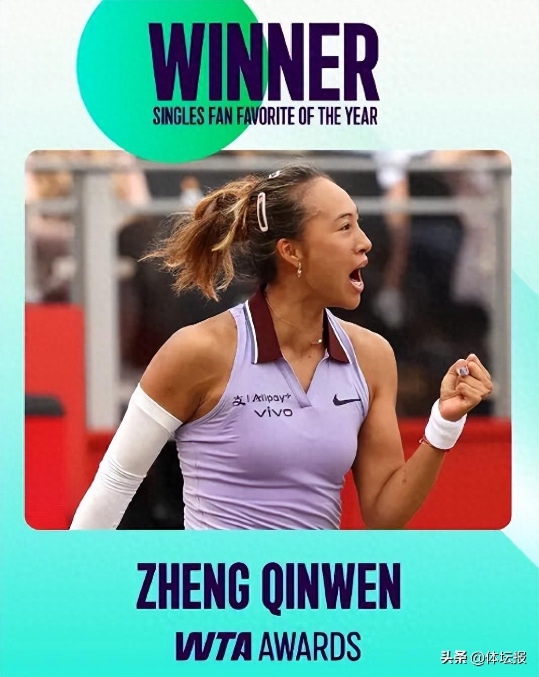 鄭欽文當選最受球迷歡迎單打球員 圖源@WTA國際女子網球協會