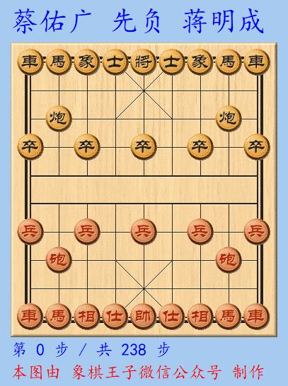 此役,雙方可謂戰得驚心無比,兩人的戰局幾度反轉,一上來,蔡佑廣先手中炮進三兵對左三步虎陣,紅棋拉左車橫起而出至河頭,右馬躍出後,黑兌7路卒失誤。