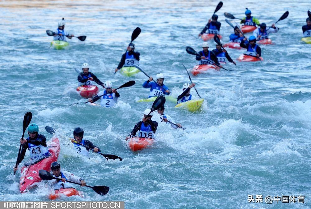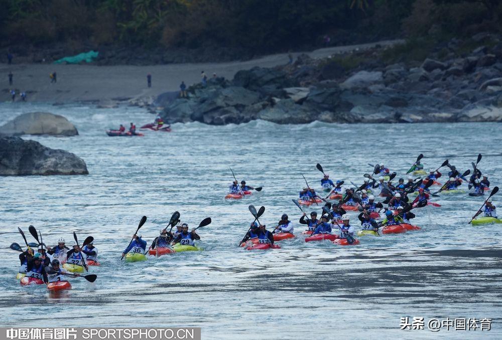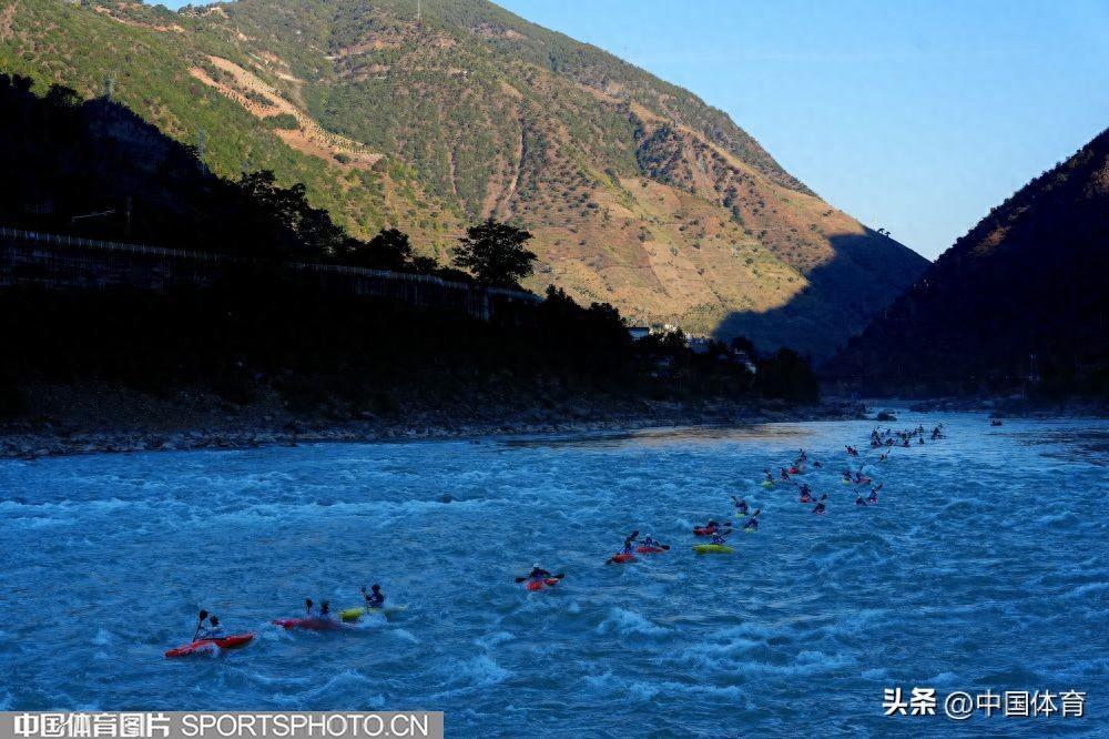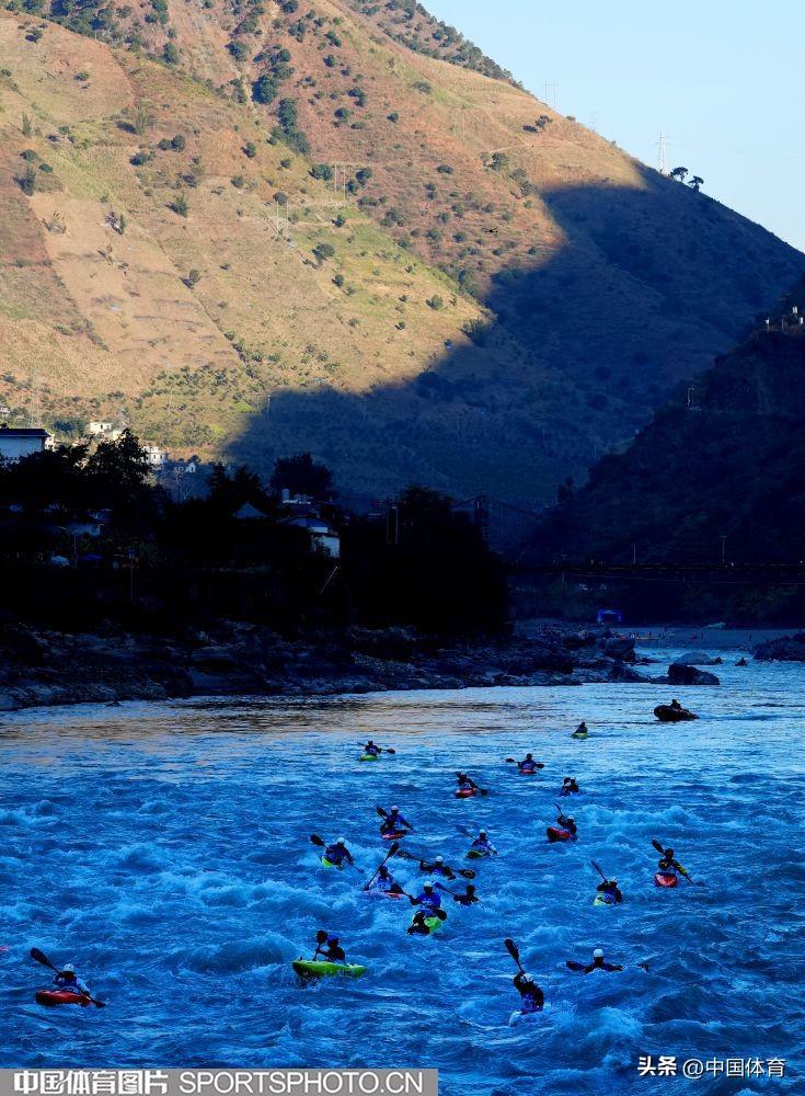 中國體育訊 12月21日,2025中國怒江皮划艇野水亞洲錦標賽暨國際公開賽在雲南瀘水市繼續進行。當日進行的長距離項目在瀘水市怒江躍進橋水域開始,全程13公里,共有88名運動員參賽。圖爲長距離項目比賽現場。(中國體育圖片 倪敏哲 攝)