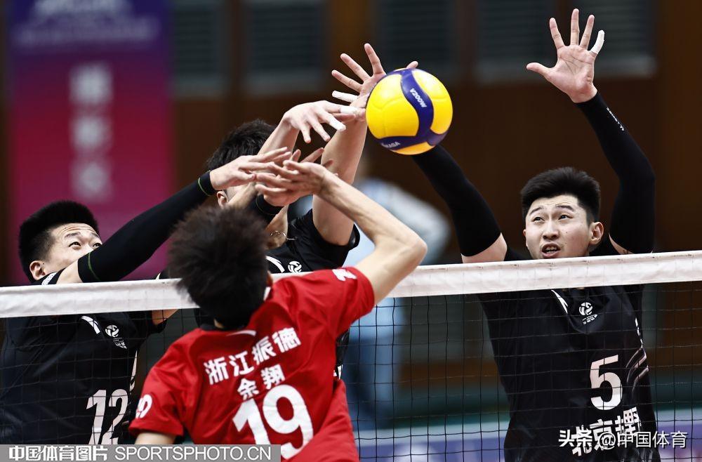中國體育訊 12月21日,2025-2026中國男子排球超級聯賽第一階段A級第三輪的一場比賽在北京越野光彩體育館舉行,北京北汽主場3比0擊敗浙江振德。(中國體育圖片 王憲民 攝)