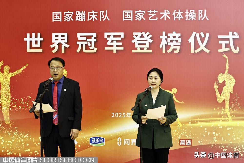 中國體育訊 12月22日,國家蹦牀隊和藝術體操隊世界冠軍登榜儀式在北京體育大學舉行。在2025年蹦牀世錦賽上,中國隊奪得4金2銅,其中王梓賽、胡譯乘分別奪得男子網上和女子網上兩個奧運項目的金牌。此外,中國隊還收穫了女子網上團體和混合團體兩枚集體項目的金牌。在2025年藝術體操世錦賽上,由孫丹教練指導的中國隊斬獲5帶項目的金牌。(中國體育圖片 王憲民 攝)