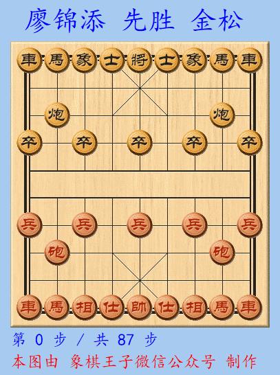 此後兩人轉換,交兌雙車下來,廖錦添進入馬炮對單炮,87手憑馬後炮的手法絕殺奪勝。