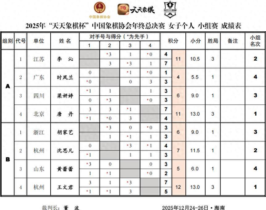 2025年“天天象棋杯”中國象棋協會年終總決賽的大戰,在海南澄邁,歷經激烈的小組拼殺,火線拼奪,驚心比拼,男女四強全速突圍,火力而進。
