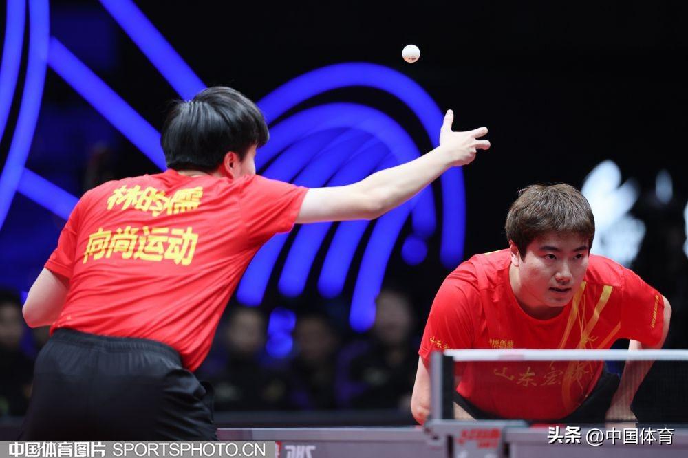 山東魏橋隊林昀儒(左)與上海地產隊孫正在比賽中
