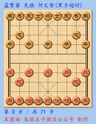 孟繁睿指出黑方已超時,何文哲欣然接受,事實上,黑這步不知何應,即使走將5平4,紅車八進二,也是白喫黑馬,黑若車3平4,車對捉馬,尚有一戰,何文哲落敗,獲得亞軍和十五萬獎。