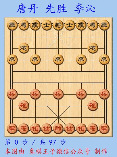 雙方在小組賽時曾交手過一次,當時唐丹後手擊敗了李沁,兩人此次決賽再弈,超級丹執先手擺出仙人指路陣,李沁應以對挺卒。