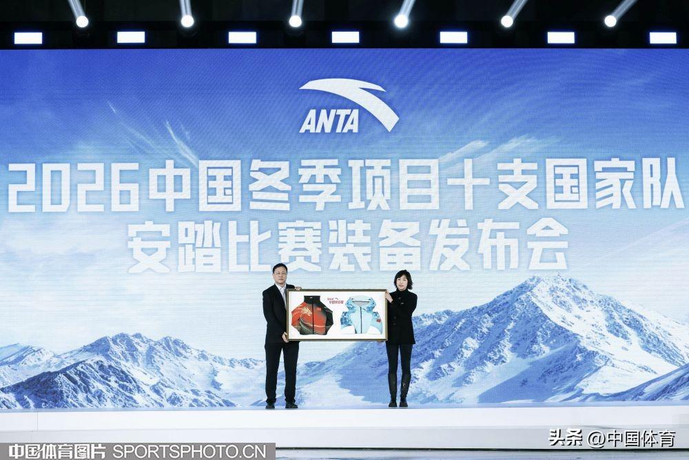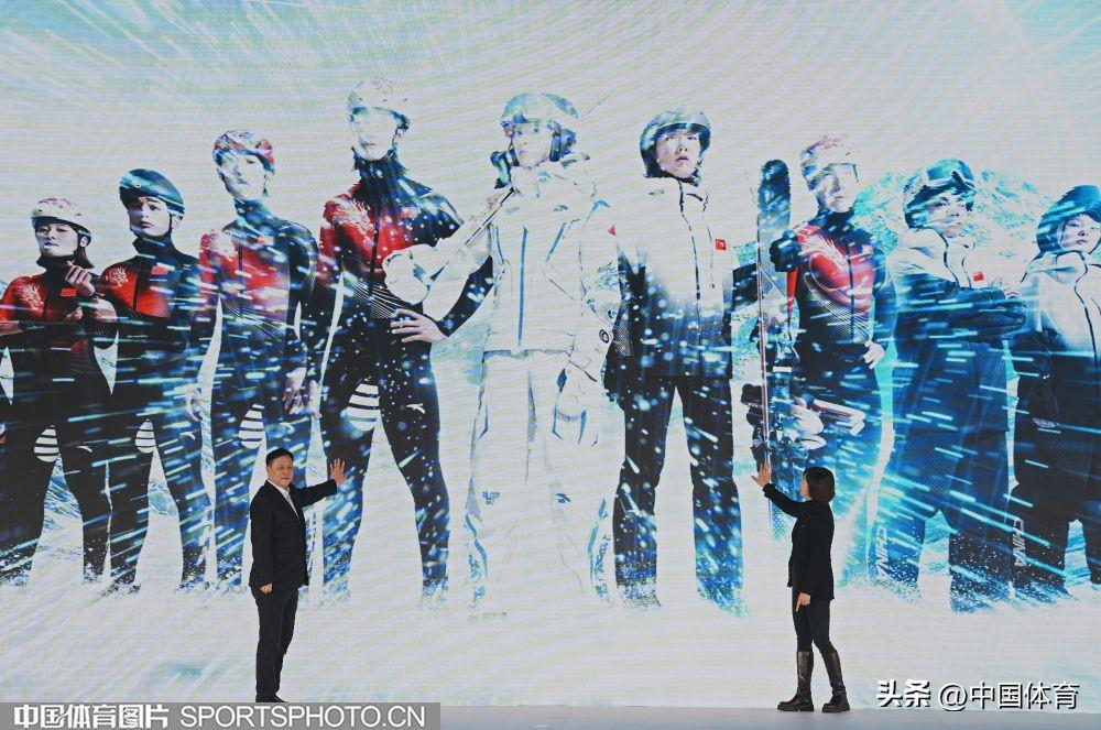 國家體育總局冬季運動管理中心副主任李文革與安踏品牌副總裁&首席營銷官朱晨曄共同發佈冬奧裝備