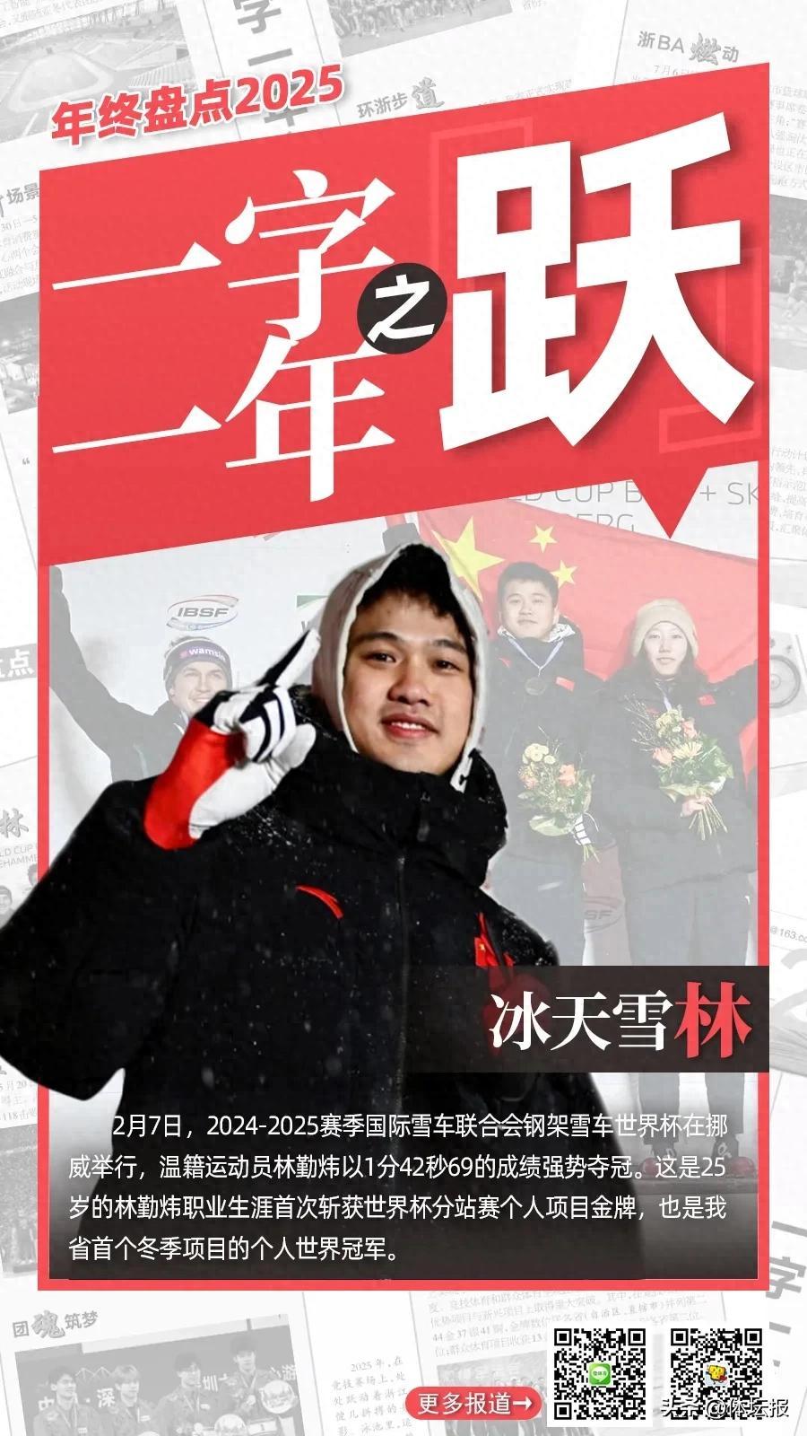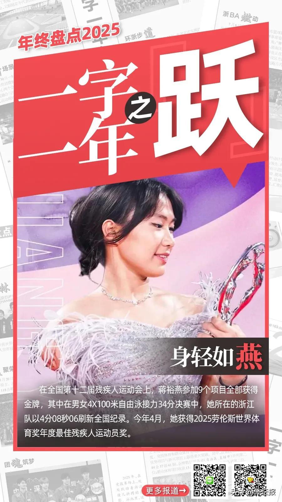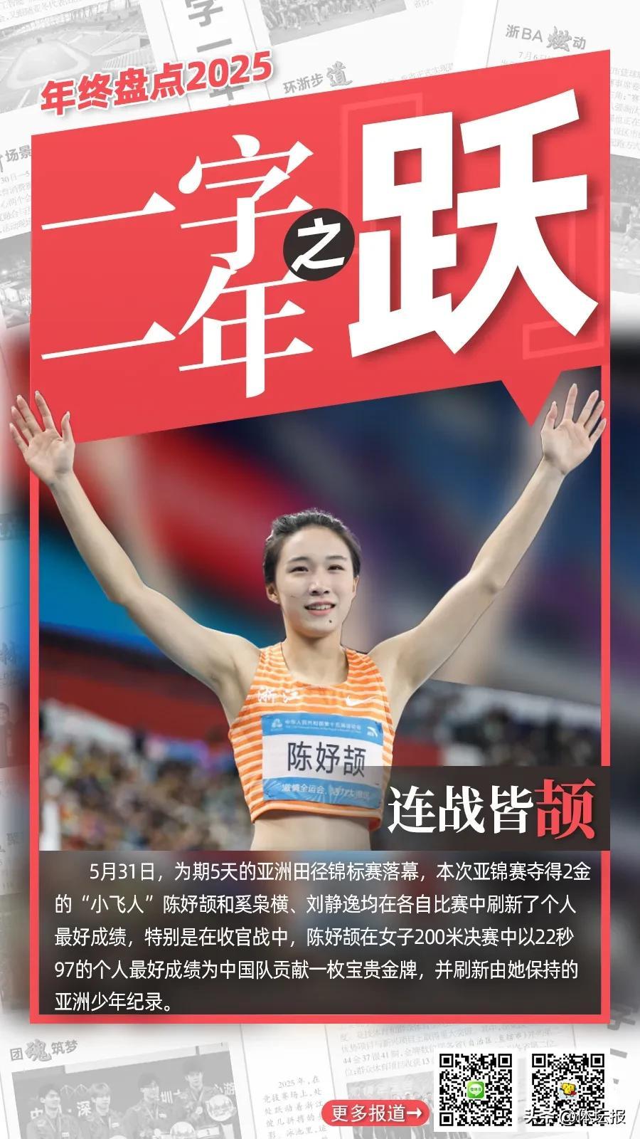 2025年,在競技賽場上,處處躍動着浙江健兒拼搏的身影。泳池裏,運動員們躍入碧波,浪花翻湧間劃開速度的賽道;田徑場上,健兒們助跑、騰躍,每一次縱身都向着更高的紀錄衝擊;籃筐之下,籃球運動員驟然躍起,在空中舒展身體振臂投籃,將球奮力投向目標......躍,是訓練館裏無數次蓄力後的迸發,是賽場上超越對手更超越自我的果敢,更是浙江競技體育踏浪前行、不斷攀高的鏗鏘步伐,躍動出屬於這片熱土的體育榮光。體壇報綜合報道製圖:華雨晨(體壇報)