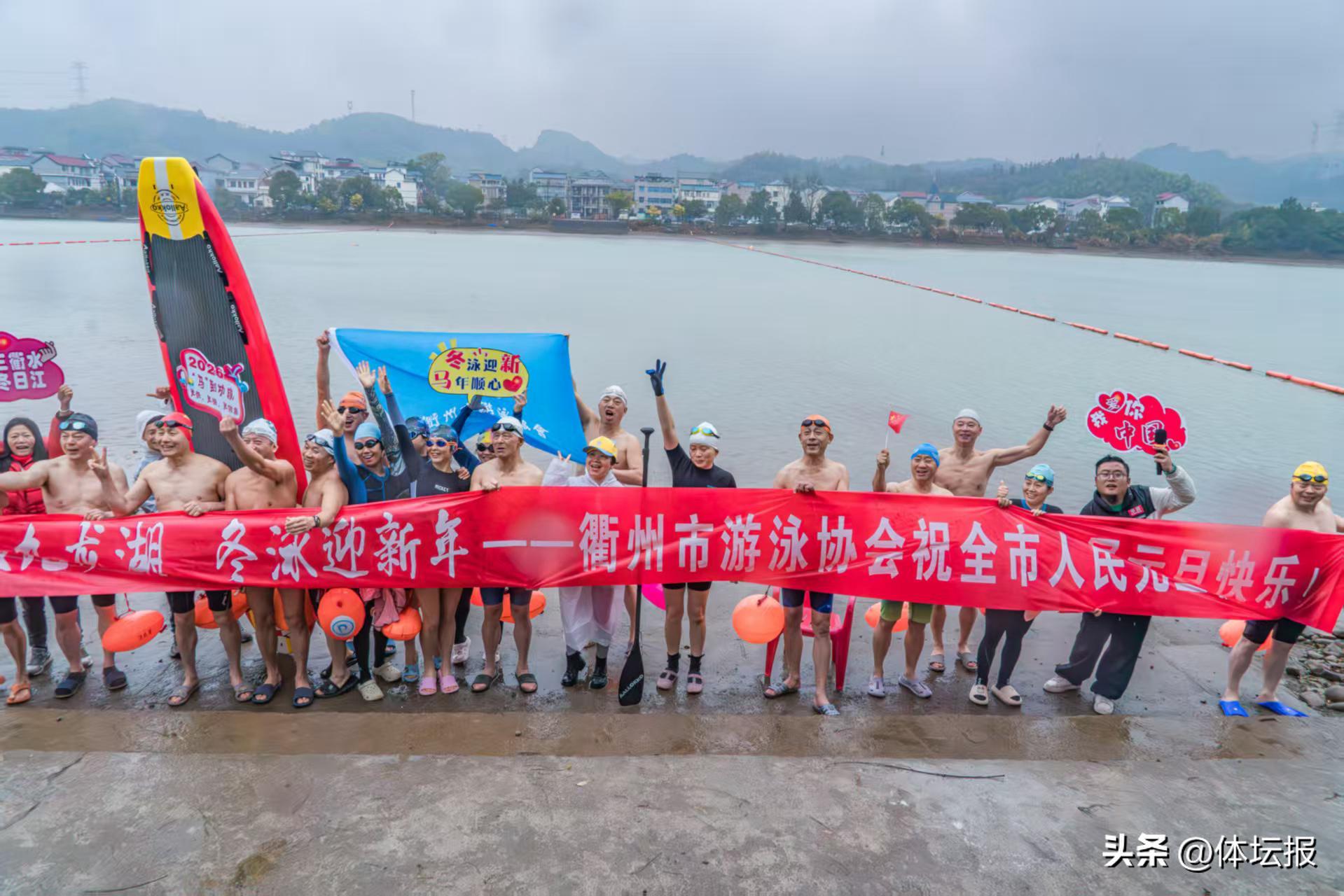 1月1日,位於衢州柯城區石室鄉九龍村的“野能遊”游泳基地,30多名冬泳愛好者,進行新年第一遊,橫渡烏溪江。當天,衢州市游泳協會進行冬泳迎新活動。據現場實測,氣溫6攝氏度,水溫9攝氏度。30多名冬“勇”者,在寒風冬雨中躍入烏溪江劈波斬浪,奮勇前行。據悉,衢州游泳協會已成立10 週年,素有冬泳迎新的傳統。通訊員 胡江豐