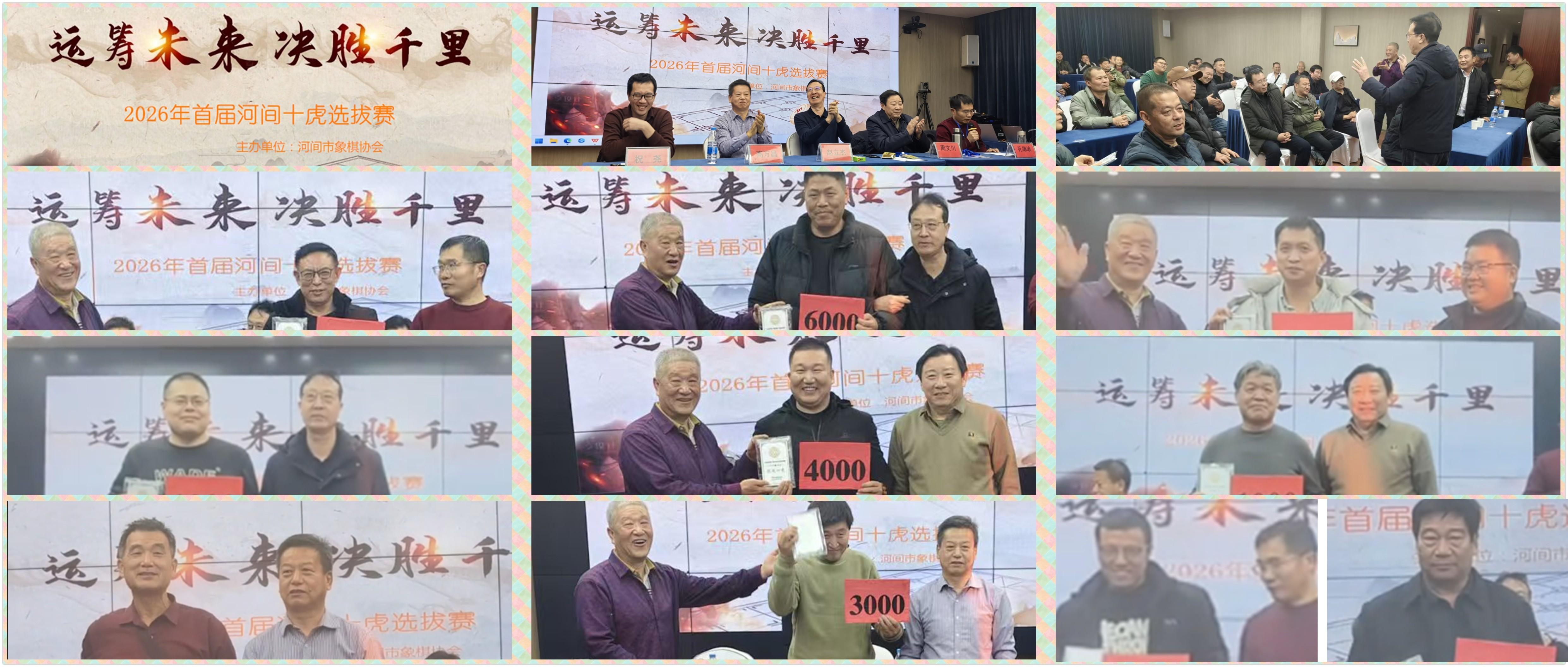 熱烈祝賀2026年河間市象棋協會第一屆河間十虎選拔賽圓滿成功,年度開年第一民間本土大賽,一縣之域,成爲縣級市中的巔峯代表,比肩很多全國賽,河間象棋孟嘗君、河間市象棋協會會長、河北新巨杉科技發展有限公司董事長趙立傑先生全力投入和打造,河間衆英豪和強士鼎力組織,造就2026首個本地象棋盛會,賀喜馮彥通、吳鵬、孔德文等河間十虎,恭祝優秀獲獎棋手,祝福河間象棋新年大紅,欣欣向榮,越來越好,更上一層樓!