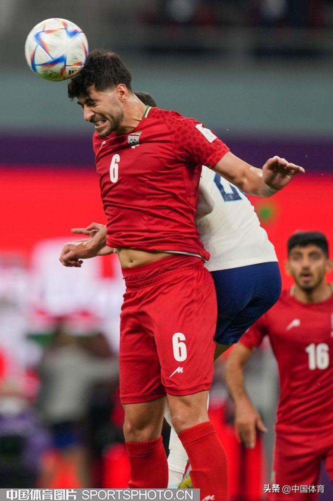 圖爲伊朗隊埃扎托拉希爭頂頭球