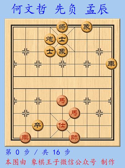 第六輪中,孟辰執後手出戰剛獲天天象棋杯亞軍的何文哲大師,本仗,黑方施以棄子搶攻術。