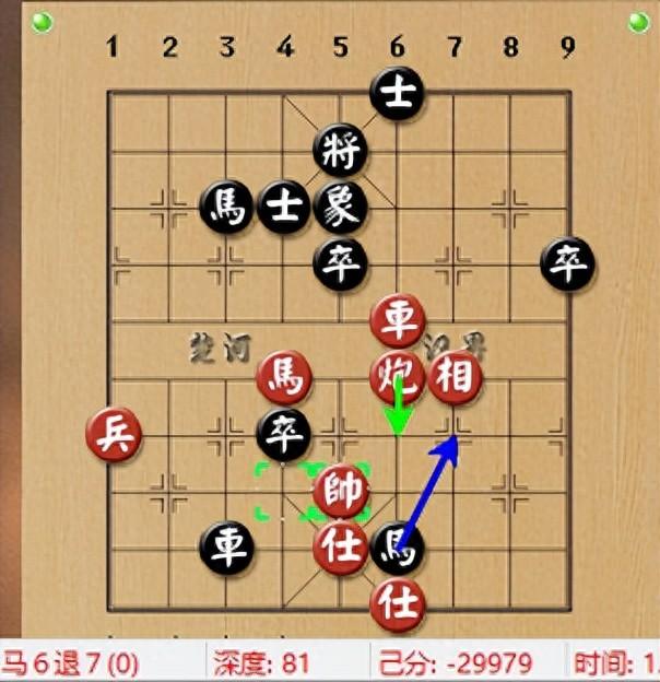 時間緊張中,114手黑方未發現馬6退7回馬先將,再退車做將的連環殺手,直接退車將後,紅揚仕,黑回馬喫,仍是有殺,下卒喫仕,紅帥出四路。
