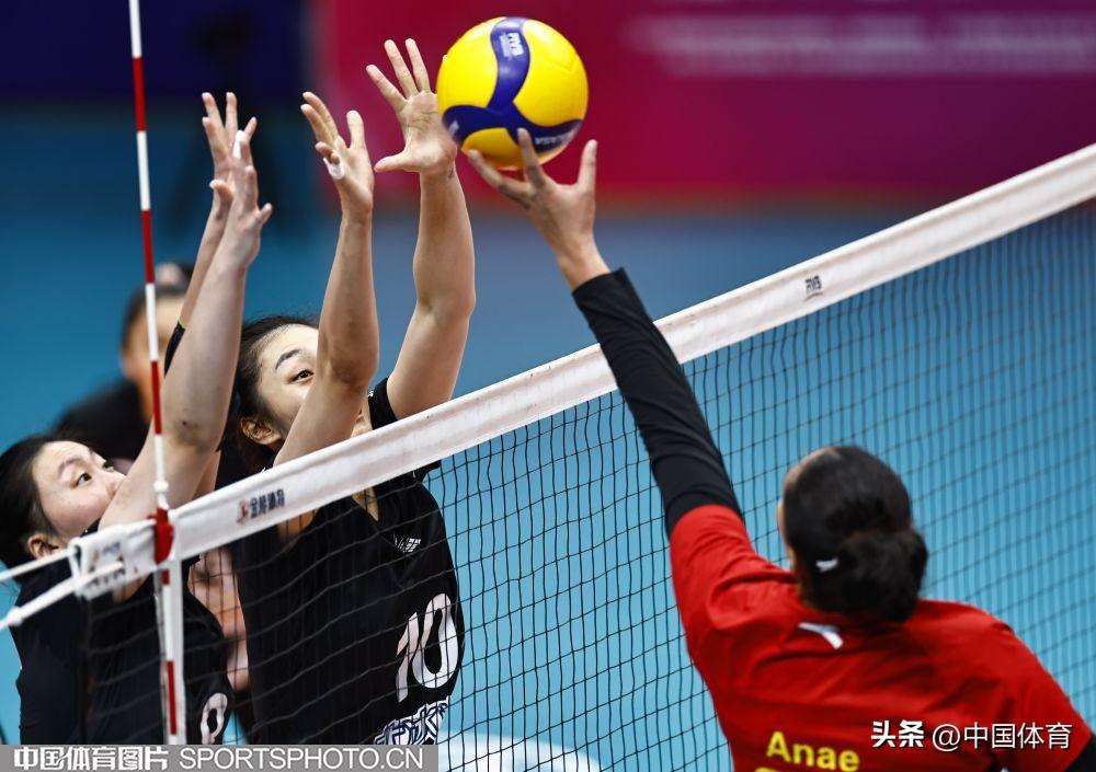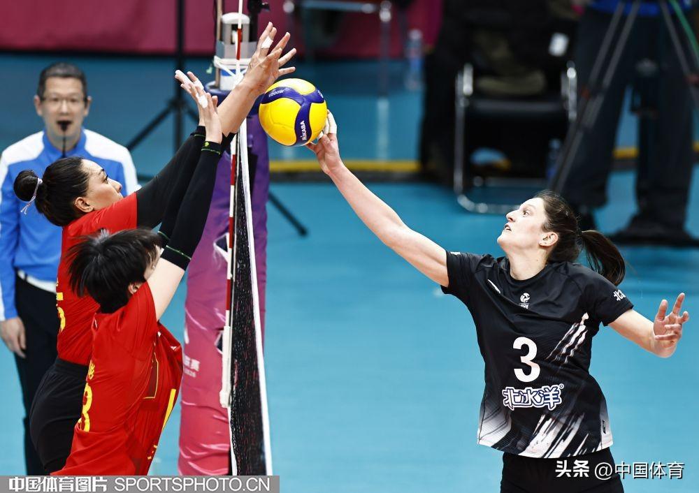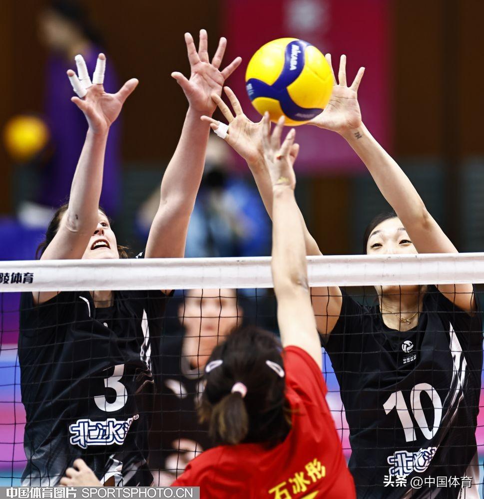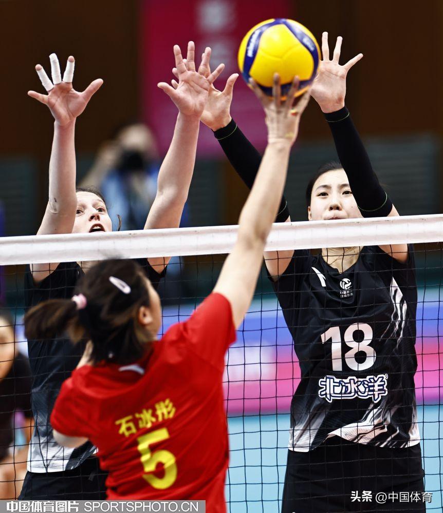 北京北冰洋隊葉萊娜·武林(左)、張宇攔網