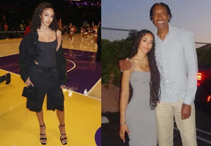 在星光熠熠的斯臺普斯中心,場邊出現了一位引人注目的年輕觀衆,她是NBA傳奇球星皮蓬的獨生女索菲婭,觀賽後第一時間,索菲婭在社交媒體上曬出了自己現場觀戰的照片,鏡頭中的她身穿一件黑色帶吊裙,大秀婀娜身材,笑容燦爛,盡顯青春活力,小小年紀已經是前凸後翹的迷人曲線了。