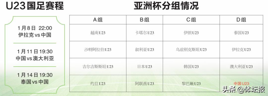 U23國足賽程&分組一覽↓