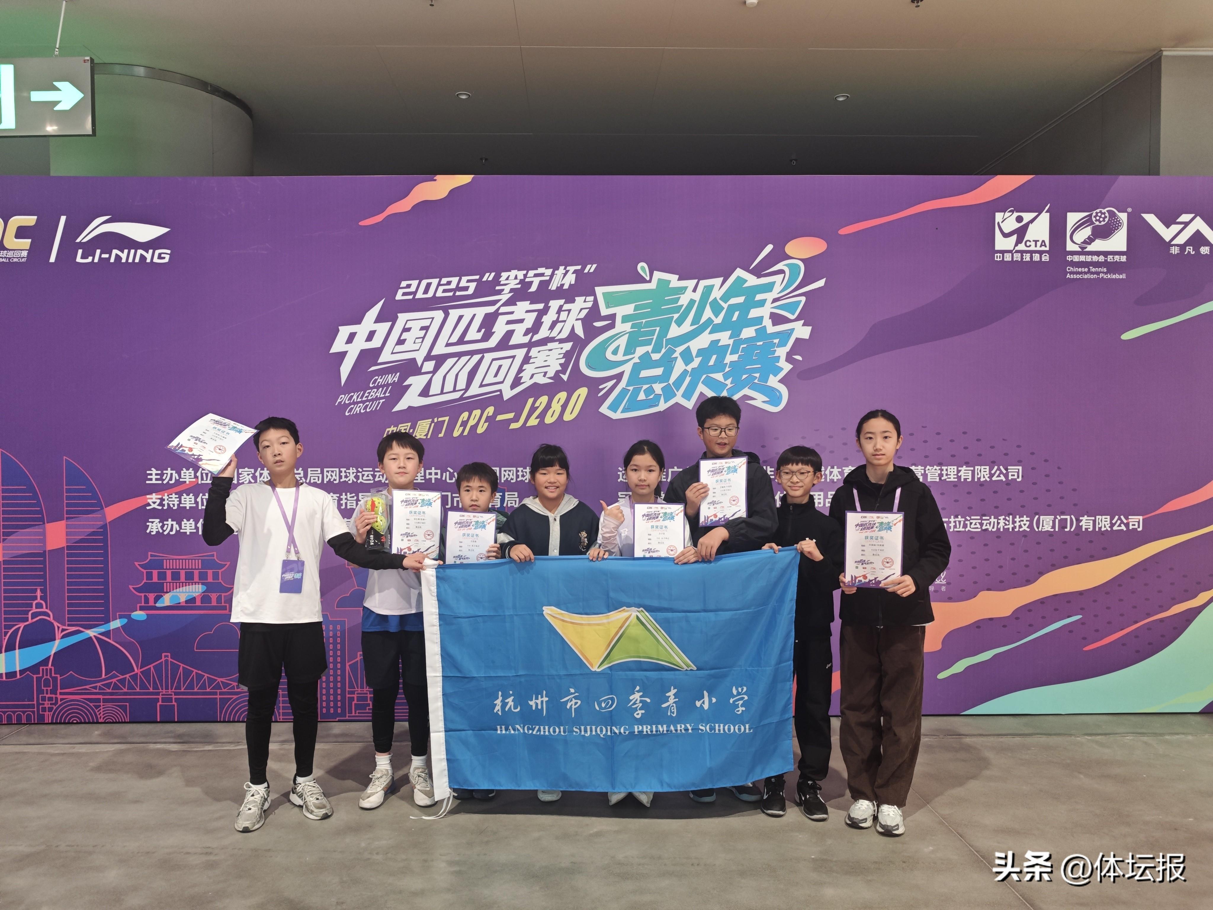 這份碩果不僅凝聚着小運動員們的汗水與拼搏,也是杭州市四季青小學學子紮實推進特色體育建設、積極響應浙江省體育局與省智力運動管理中心推廣匹克球項目的生動體現。學校始終秉持“五育並舉”的育人理念,將匹克球運動有機融入體育課程、社團活動與校園文化,通過系統教學與多元賽事平臺,激發學生運動興趣,錘鍊其意志品質。