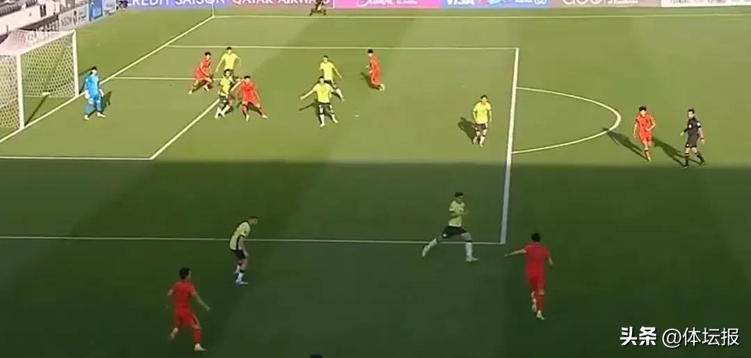 功夫不負有心人,接近半場尾聲時,國足獲得定位球機會,王鈺棟將球開出後,彭嘯看準機會禁區內一蹴而就。這一進球幫助國足率先破局的同時,也讓隊伍能夠帶着優勢結束半場。