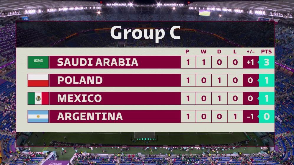 北京時間11月23日,本屆世界盃的第二場0-0比分上演,波蘭與墨西哥互交白卷,打成平手,這樣一來,本組的形勢變得異常複雜,沙特爆冷2-1擊敗阿根廷之後,佔據小組第一的位置,而波蘭與墨西哥並列第二,最尷尬的要數阿根廷,本來是本屆世界盃的奪冠大熱門,現在居然墊底了。