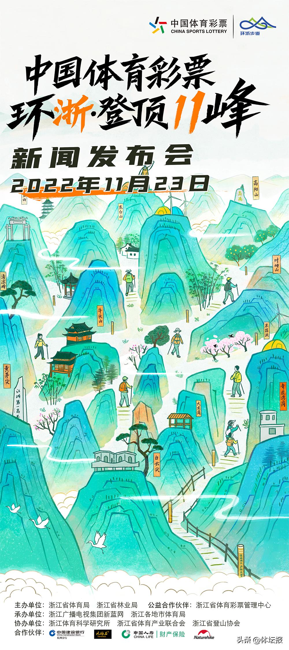 11月23日上午,以“運動浙江·戶外天堂”爲主題的2022中國體育彩票“環浙·登頂11峯”新聞發佈會在杭州舉行。