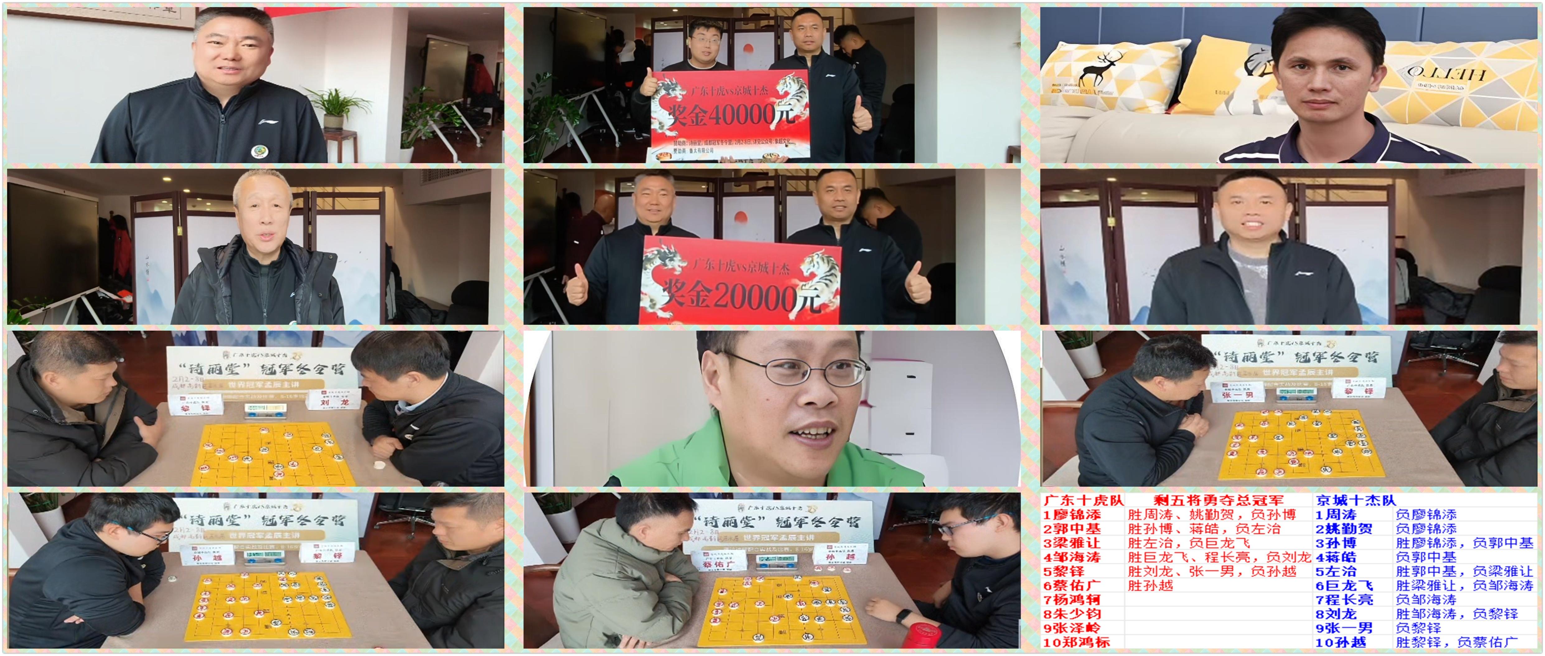 至此,江湖第一軍團、業餘第一品牌廣東十虎隊在剩下蔡佑廣、楊鴻軻、朱少鈞、張澤嶺、鄭鴻標五將的情況下,勇奪了大賽的總冠軍,京城十傑隊落敗,獲得亞軍。