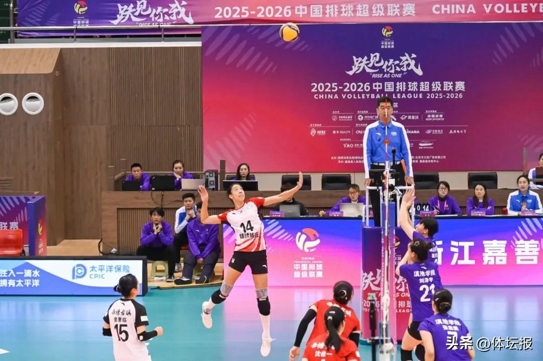1月17日,2025-2026中國女子排球超級聯賽B級聯賽第十一輪浙江西塘姚莊女排與雲南滇池學院女排的比賽在嘉善縣體育中心體育館打響。
