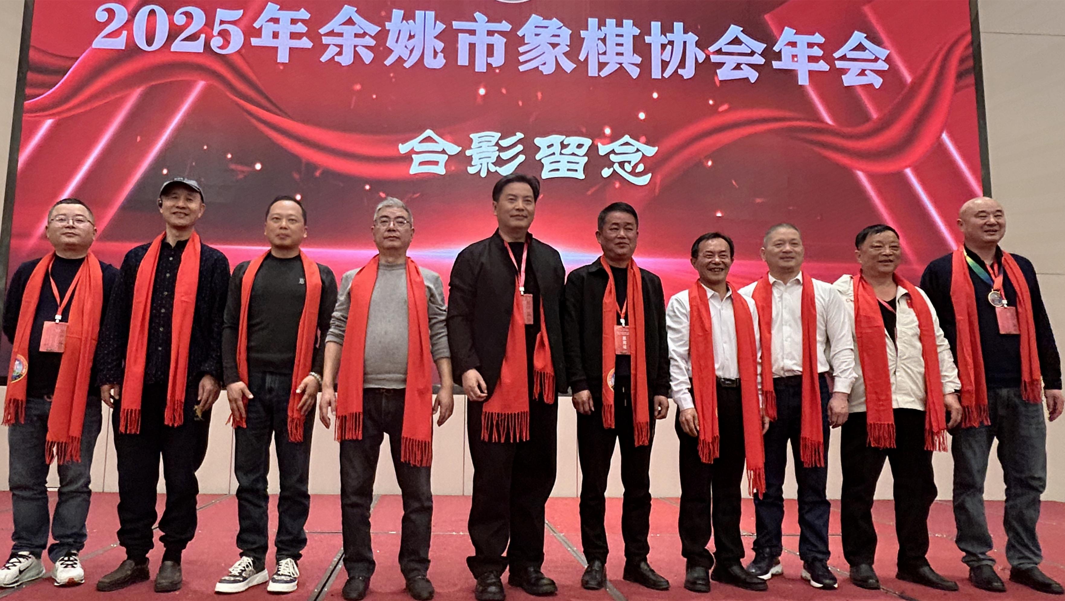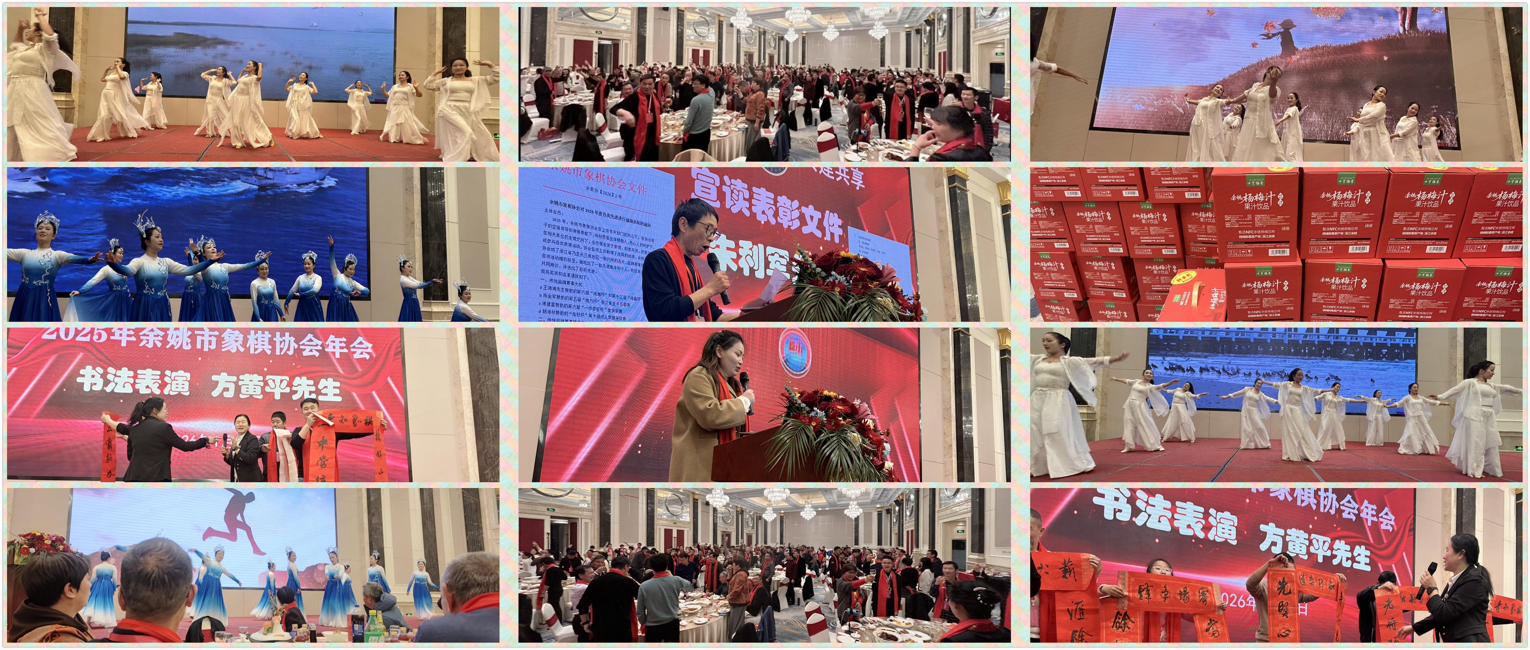 餘姚市象棋協會常務副主席應伯軍、餘姚市象棋協會常務副祕書長朱利軍、志願者代表張依娜等分別發言,馳力公司、馬字菜業、格好山莊分予獎品,方黃平書寫多副春聯,象棋大師集體合影,大家共同舉杯,同慶餘姚年會,閃耀生輝。