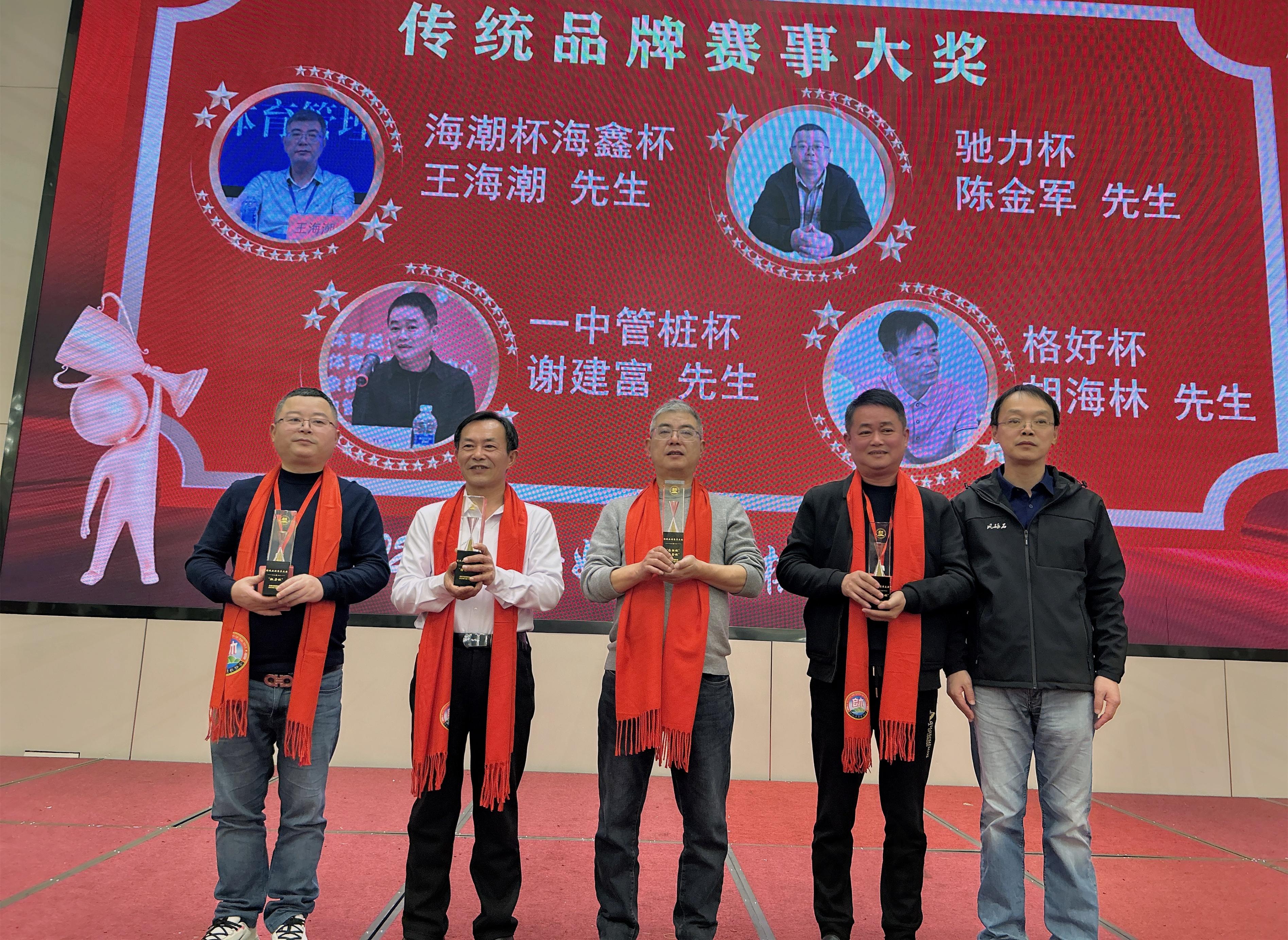 現場,授予了餘姚六大品牌賽事,海潮杯、海鑫杯贊助商王海潮先生,一中管樁杯贊助商謝建富先生,格好杯贊助商胡海林先生,馳力杯贊助商陳金軍先生,陽明杯贊助代表應伯軍先生,共同上臺領獎。