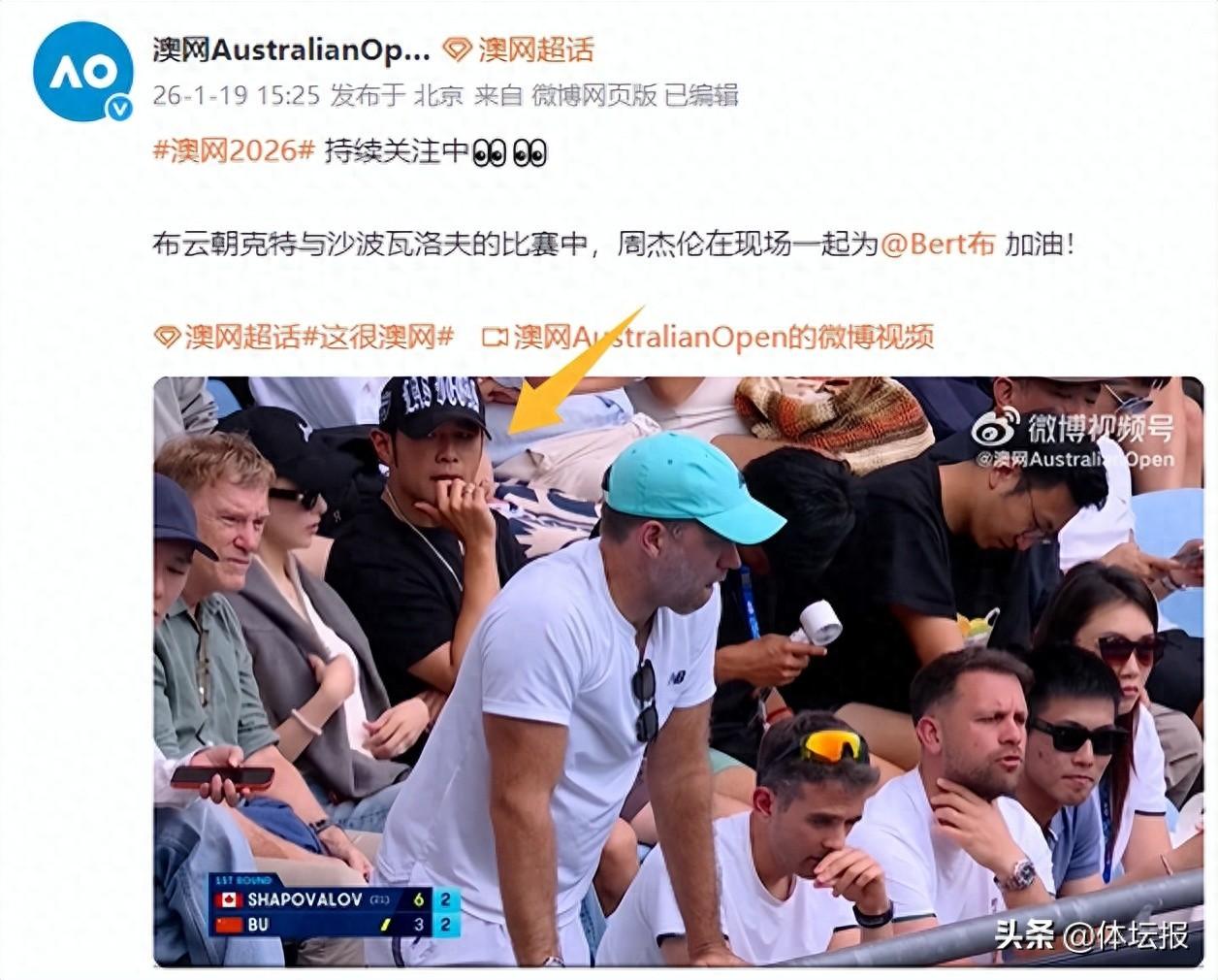周杰倫現場爲小布加油(圖自@澳網AustraliaOpen)