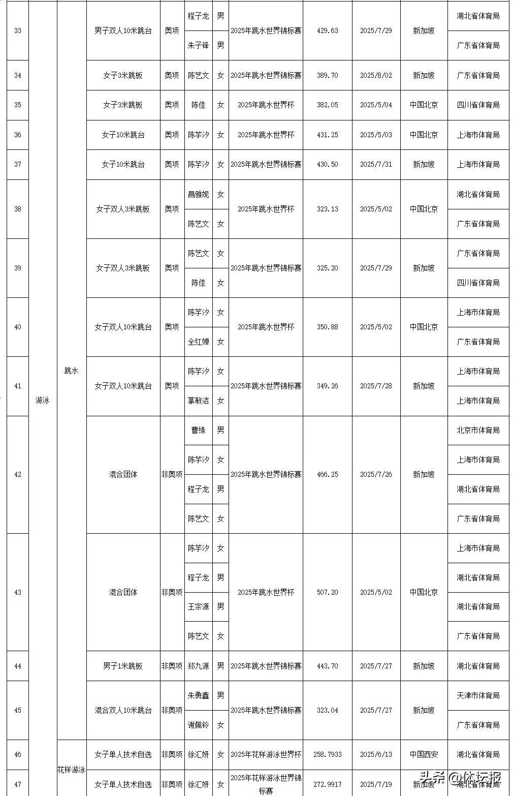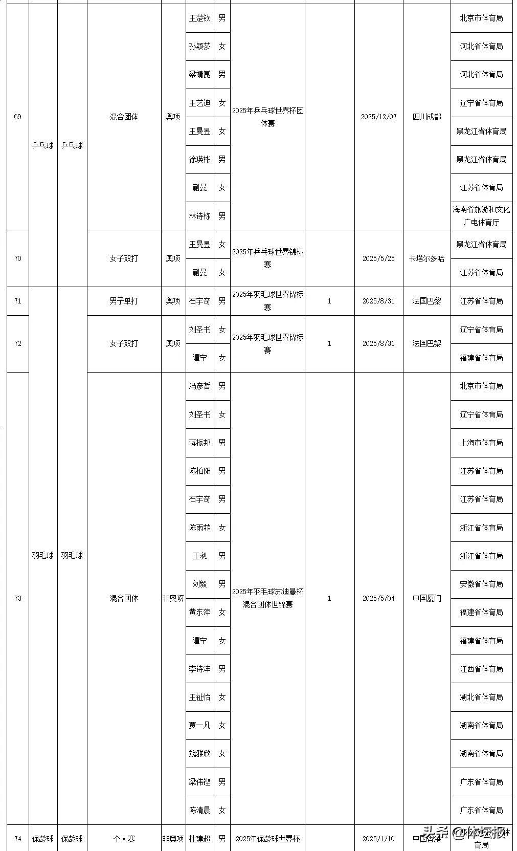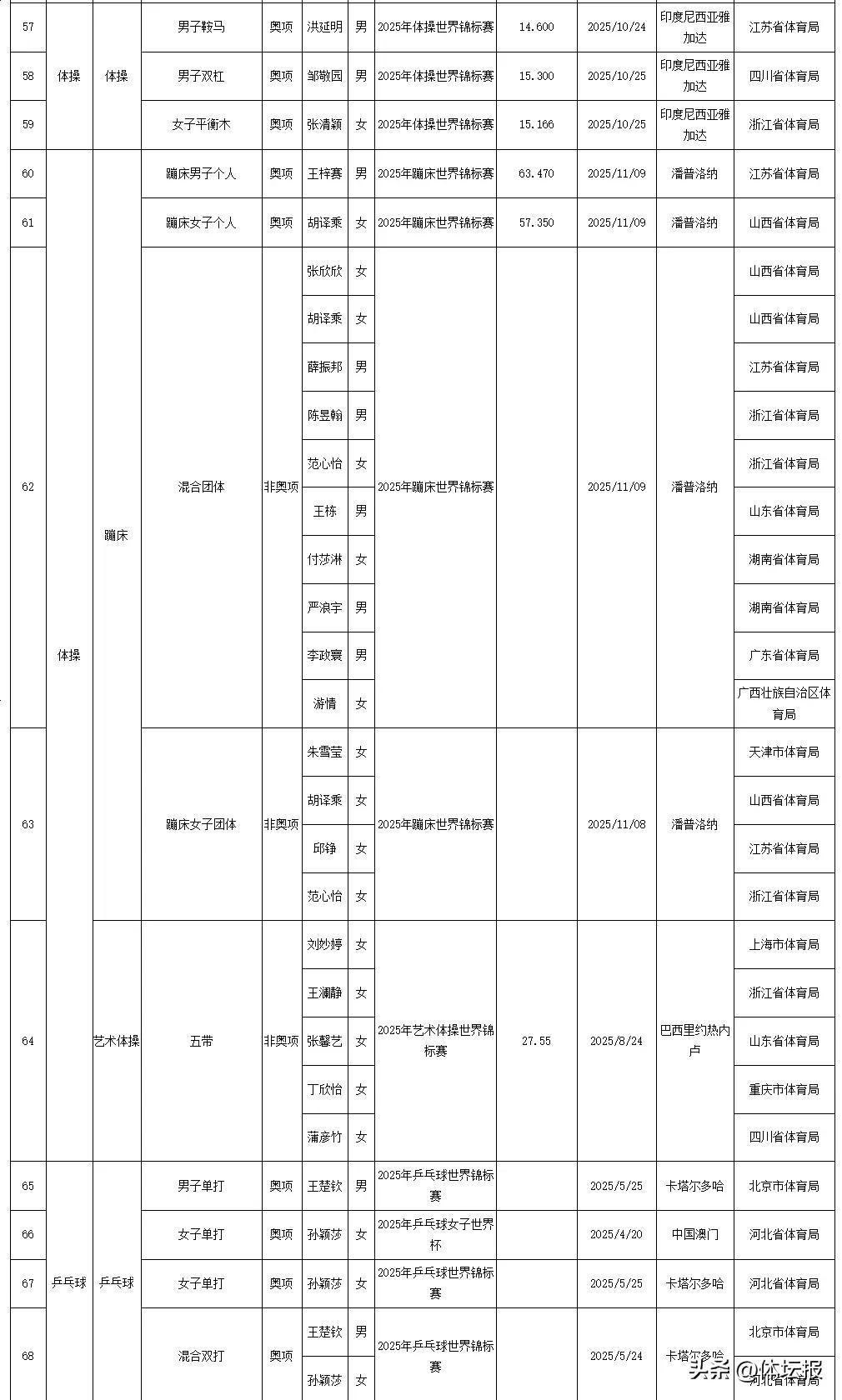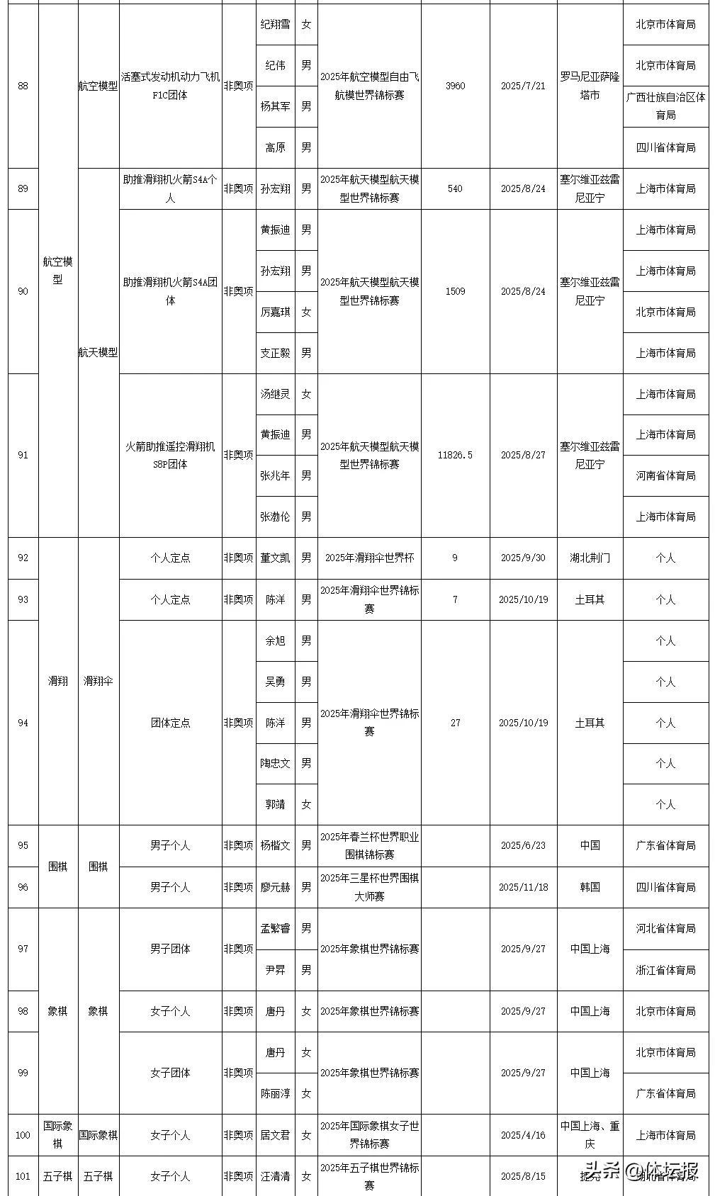 今天國家體育總局官網發佈了2025年我國運動員獲世界冠軍、創世界紀錄統計浙江共有18人次獲得世界冠軍其中,浙江射擊運動員王子菲、孫瑜潔分別打破3項和1項世界紀錄一起來看↓↓↓2025年我國運動員獲世界冠軍統計2025年我國運動員創世界紀錄統計爲中國體育健兒點贊!來源:國家體育總局競技體育司