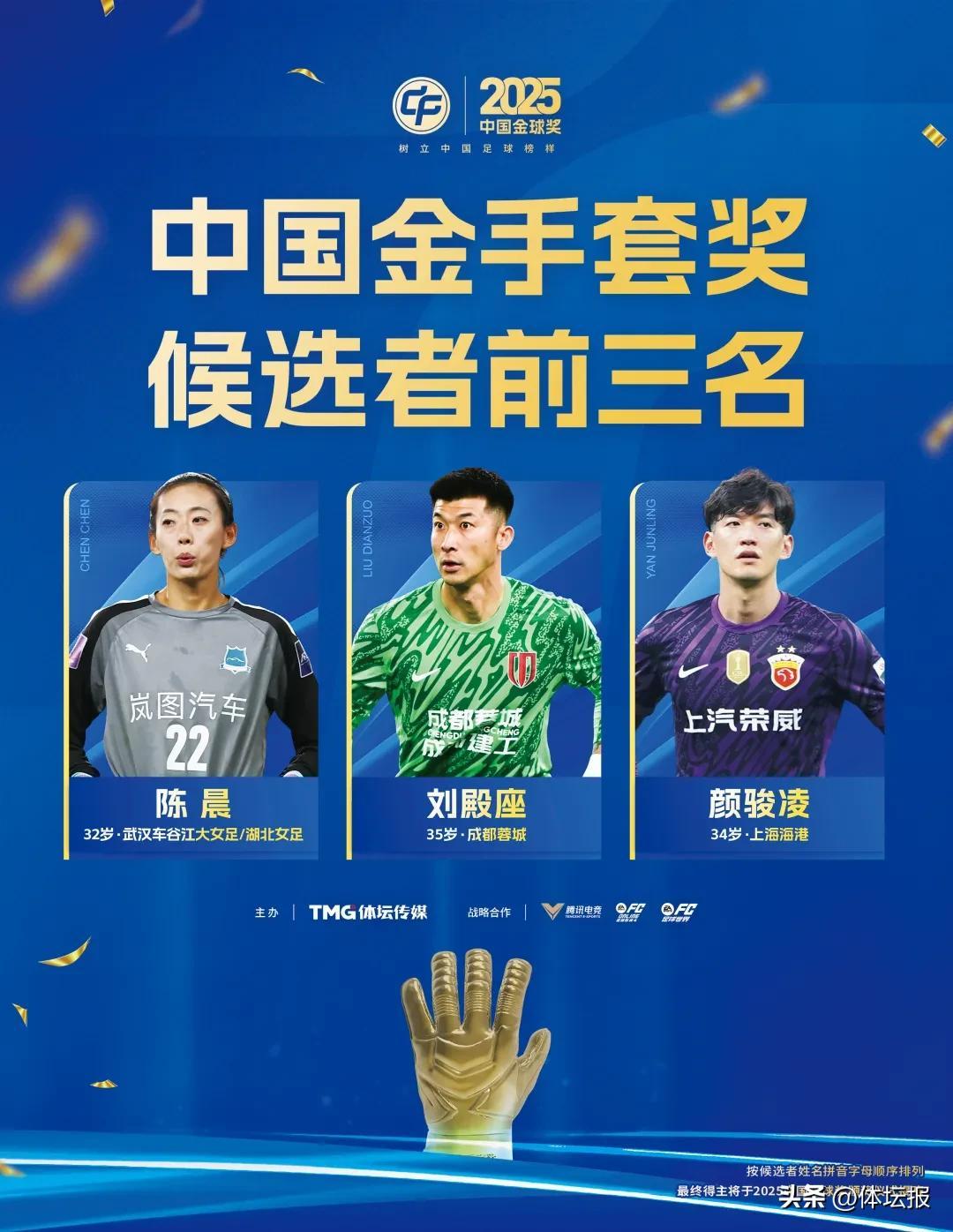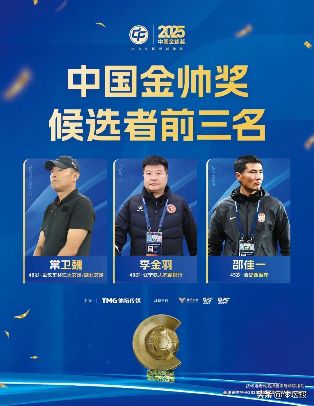 最終得主將於2025中國金球獎頒獎儀式上揭曉。各獎項候選者前三名如下: