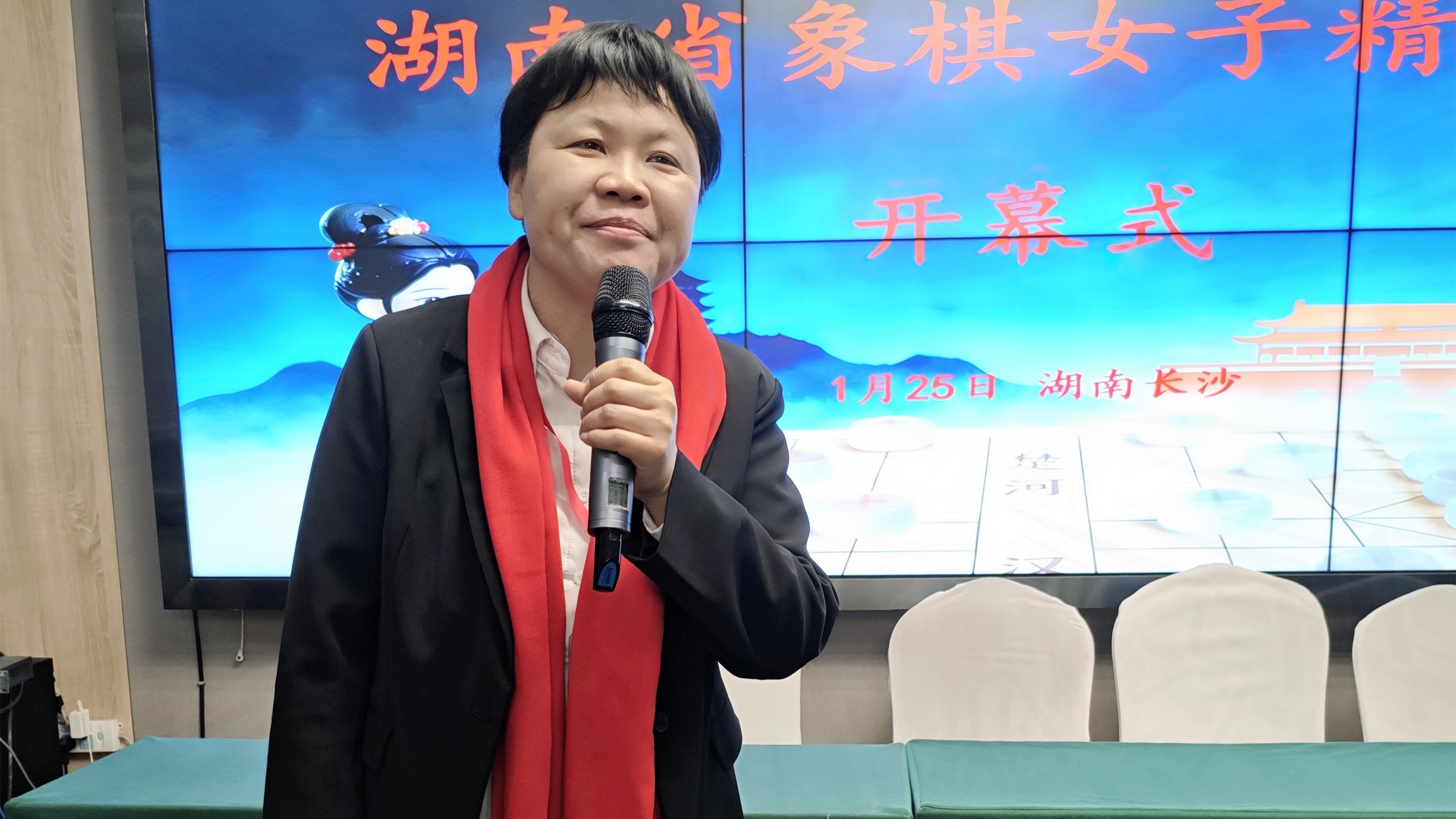 湖南省棋類協會副主席、長沙市象棋協會主席陳少林以東道主身份發表講話,他在致辭中感謝了省棋協、各市州棋協的大力支持,爲湖南有這麼多女子象棋高手來參賽,同場競技高興無比。