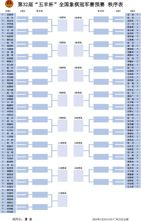 此番第三十二屆五羊杯,誰能奪冠,賽前,進行了比賽的抽籤儀式,參加預賽的男子84、女子16、港澳臺8,108將全速定位。