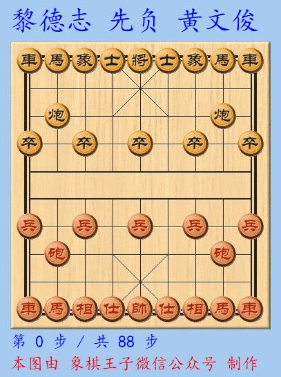 十虎王炸黃文俊執黑棋中局對殺,憑藉車馬炮三子之力,88手取勝國家大師、廣州天王黎德志車炮。