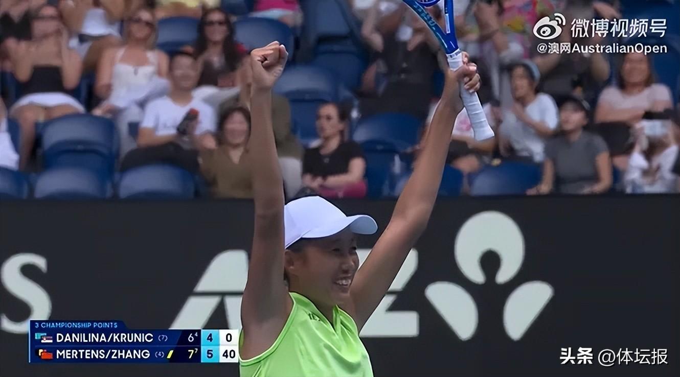 1月31日,在2026澳大利亞網球公開賽女雙決賽中,37歲的中國球員張帥搭檔比利時球員梅爾滕斯在首盤1-4落後的逆境下頑強追擊,最終以7-6(4)、6-4戰勝7號種子達尼麗娜/克魯尼奇,奪得冠軍!