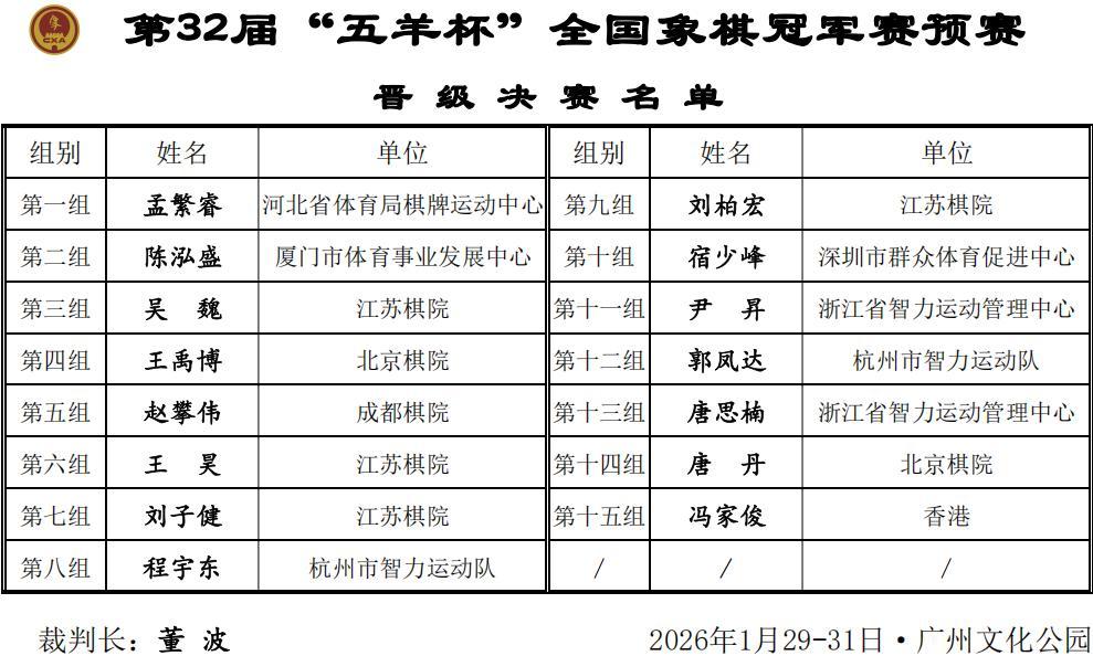 恭喜2026年五羊杯晉級到正賽的十六強大名單,恭賀唐丹孟繁睿等男女十六將,過年在即,正賽的腳步正在前方,五羊杯110萬鉅獎,百萬大賽,冠軍三十萬的盛會火熱以續,爲大賽和棋手加油,鼓掌,喝彩!