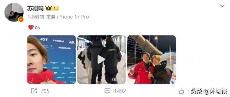 賽後蘇翊鳴在個人社交媒體上發文慶祝
