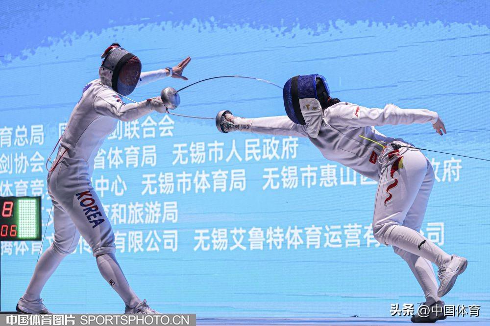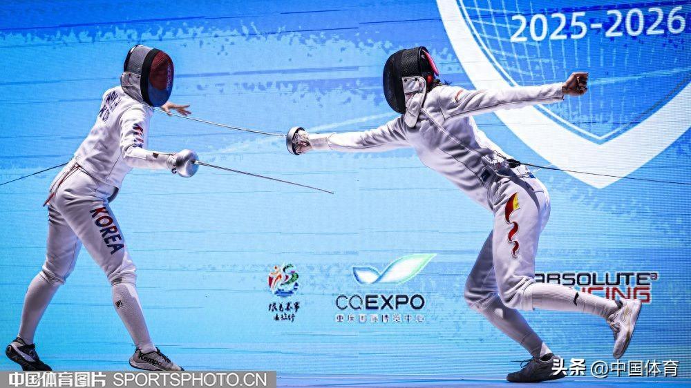 中國體育訊 2月8日,國際劍聯2025-2026賽季女子重劍世界盃第三站在無錫新城體育館舉行。在女子重劍團體決賽中,由余思涵、施悅馨、唐君瑤、劉暢組成的中國隊45比35戰勝韓國隊,奪得金牌。(中國體育圖片 張昕 攝)