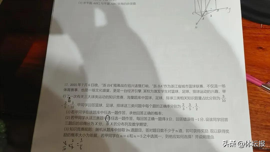 還有網友曬出結合浙BA場景設置概率問題的題目。
