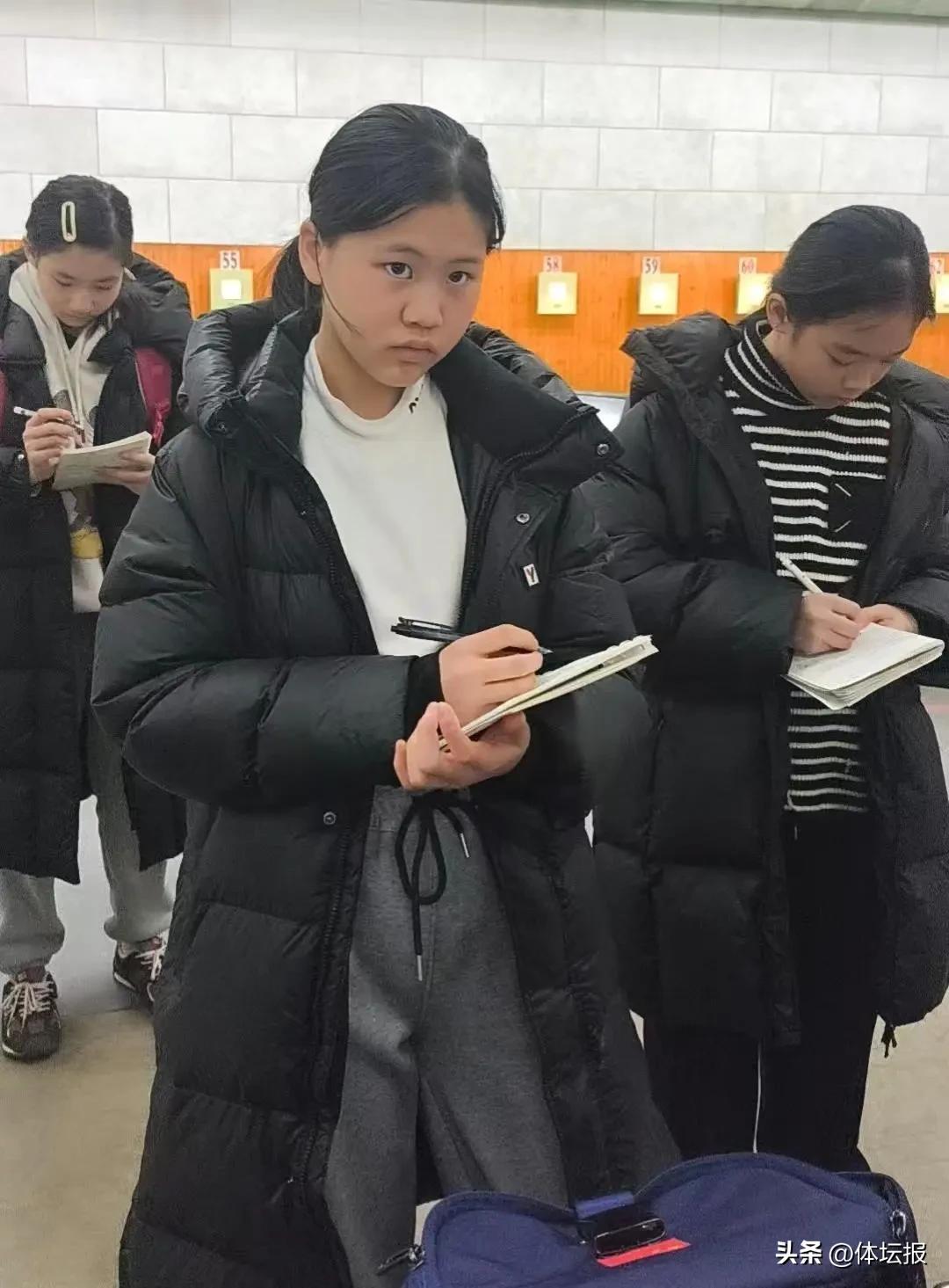 溫州體校女子步槍隊在訓練中認真記筆記