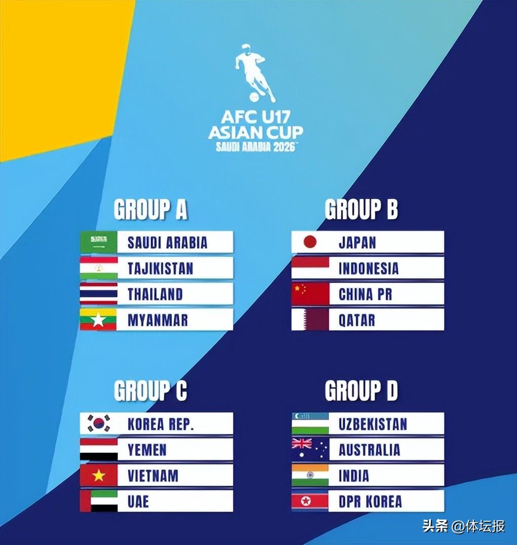 U17男足亞洲盃抽籤儀式中,中國隊與日本、印度尼西亞和卡塔爾隊同分入B組。