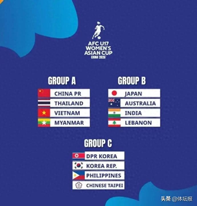 北京時間2月12日,2026亞足聯U17女足亞洲盃及U17亞洲盃的抽籤結果在沙特揭曉。U17女足亞洲盃方面,中國女足U17隊與泰國隊、越南隊、緬甸隊同分在A組。U17亞洲盃方面,中國男足U17隊與日本隊、印度尼西亞隊、卡塔爾隊同分在B組。