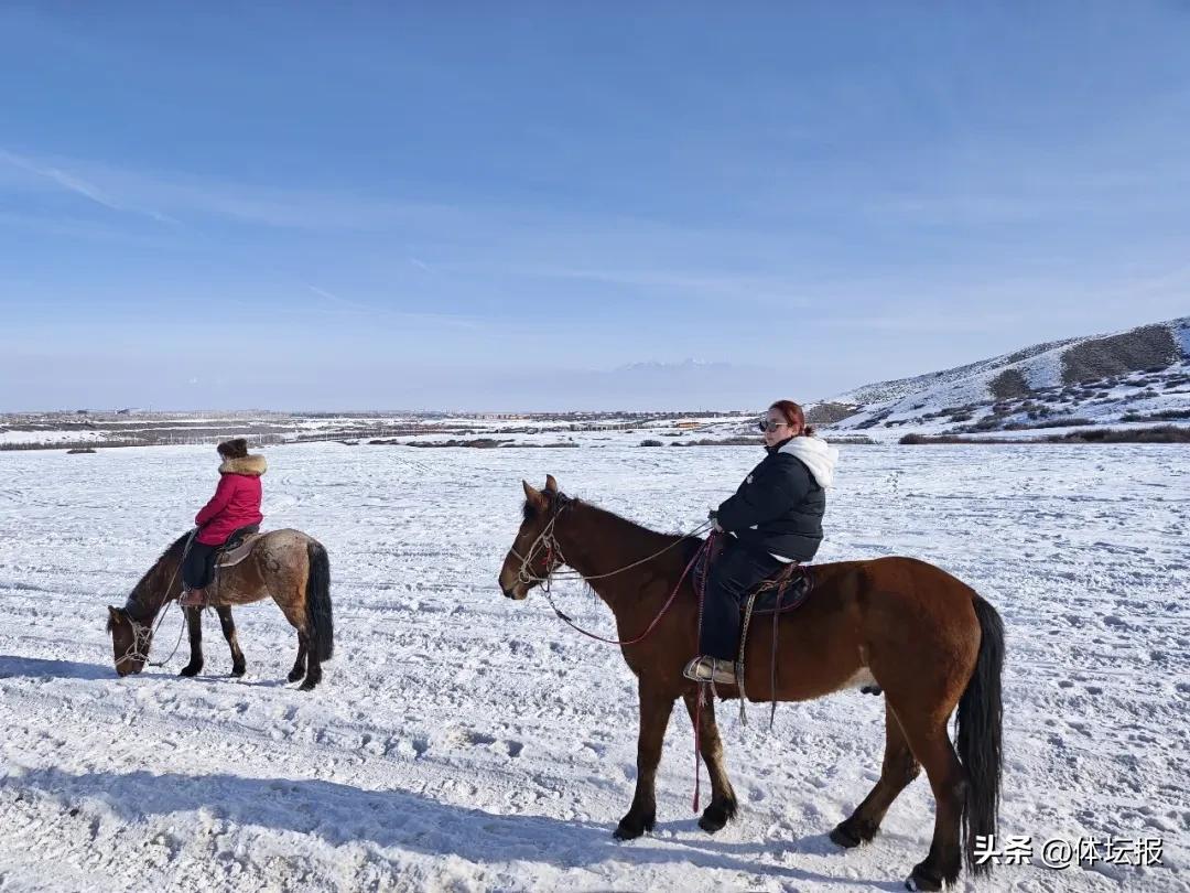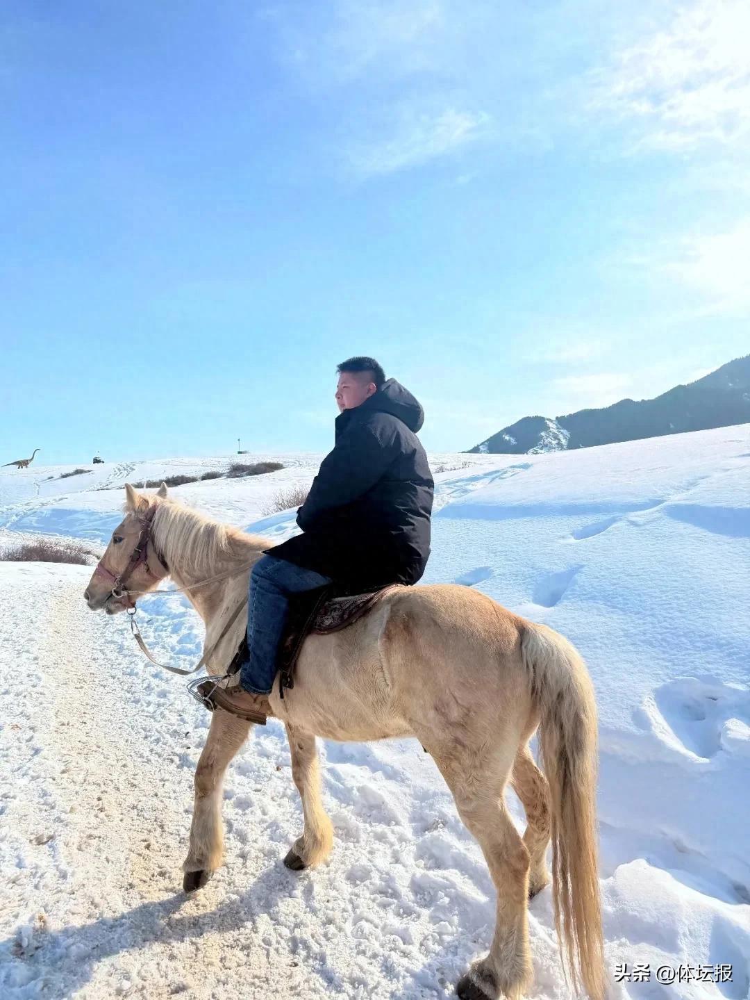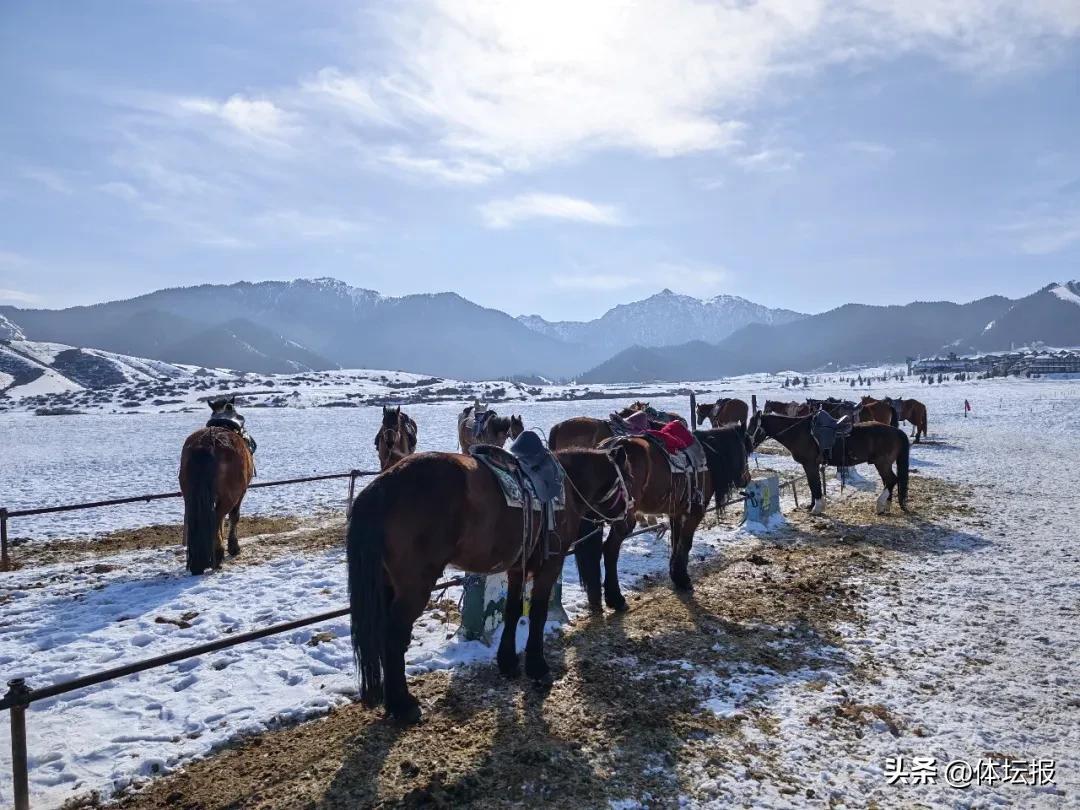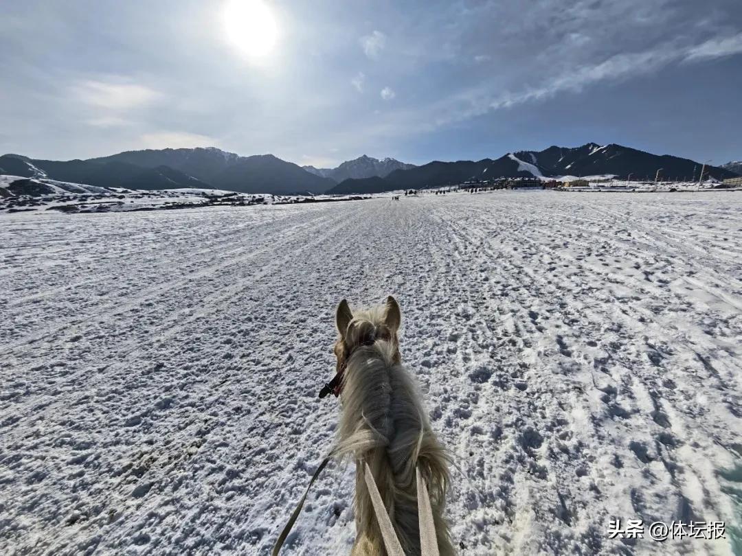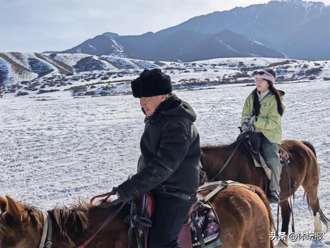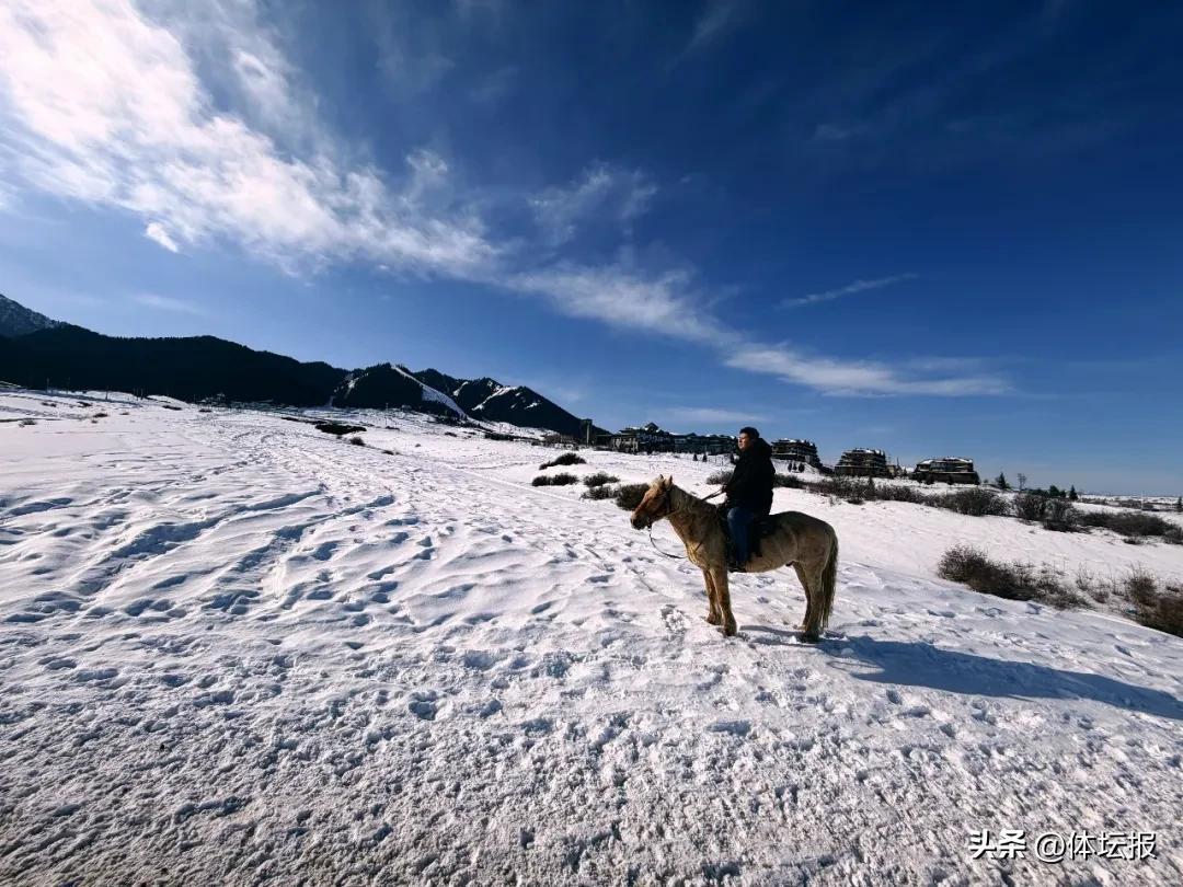 與以往不同,此次是我頭一次在冬日體驗騎行。雪地的白,天空的藍,以及遠方山上深綠如墨的大片針葉林,混成一幅新疆獨有的冬日圖景。馭馬踱步其間,耳邊是馬蹄踏雪的咯吱聲,鼻尖縈繞着清冽的空氣,眼前是被一片潔白覆蓋的廣袤大地,偶爾還能聽到遠處牧民悠長的吆喝,這一切都能讓人瞬間放空身心,感受別樣的新疆冬日韻味。