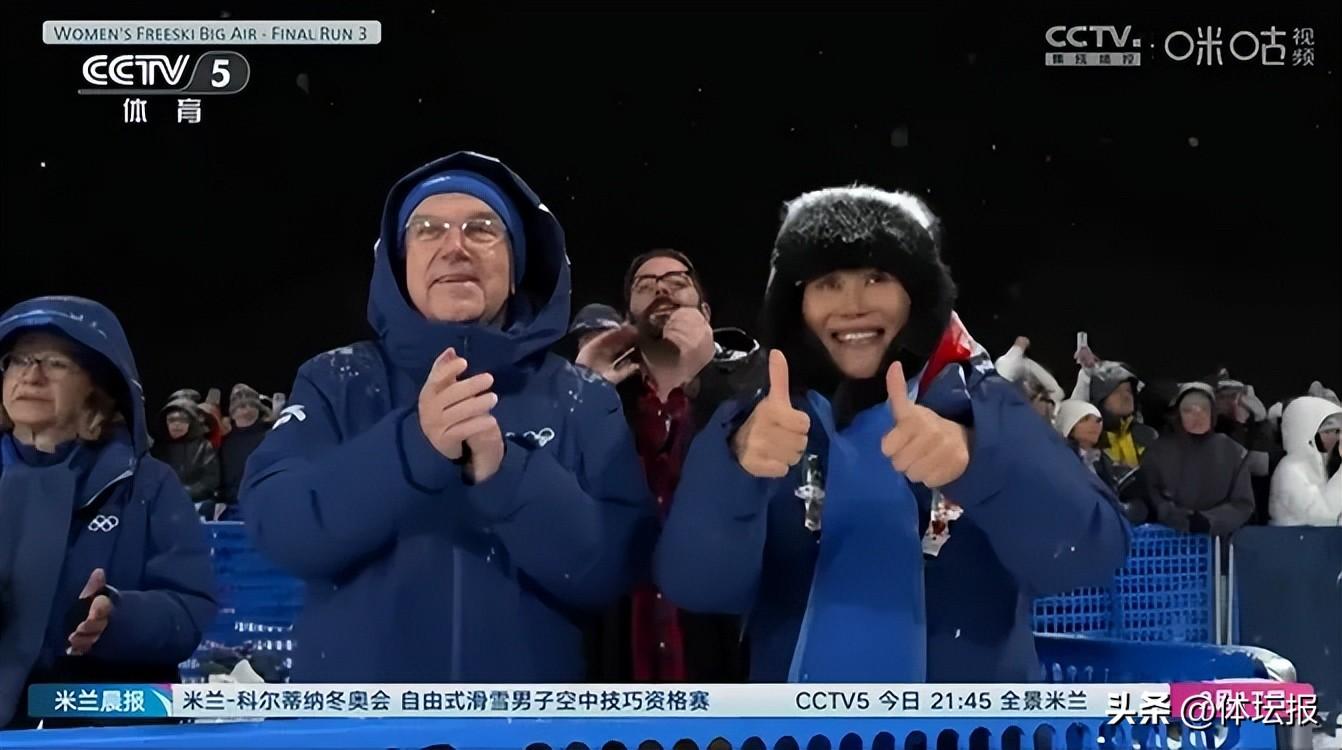 巴赫和谷愛凌母親在場邊觀賽