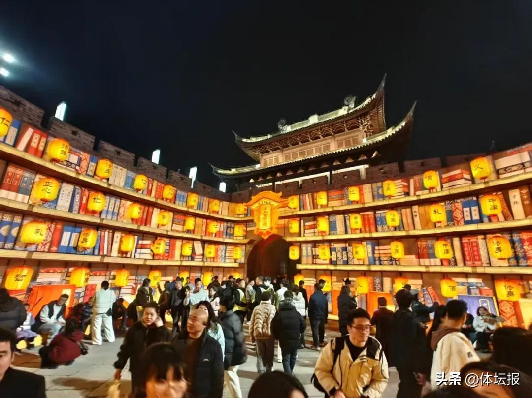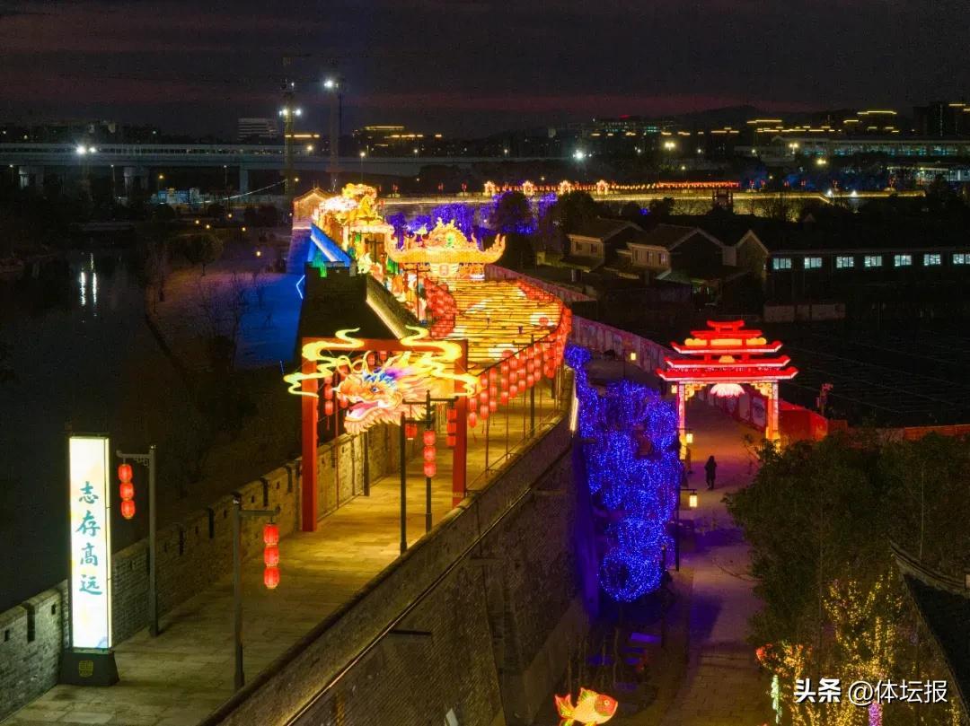 夜幕初垂,我跟着人流往城牆走。石階被腳步磨得溫潤,登上城樓那一刻,呼吸微微一滯——長達千米的城垛上,四十餘組花燈次第亮起。不是刺目的豔,而是暖融融的橙黃。雖然昨日剛下過小雨,空氣裏還透着江南初春的寒意,但這些花燈卻像把整個江南冬日的陽光都收攏起來,在夜色中緩緩釋放。最大那組燈是八匹駿馬踏雲而行,鬃毛用細竹絲編出流動感,馬眼嵌着會轉動的琉璃,在光影中恍如真在奔騰。老人們仰頭指認:“這是赤兔,這是的盧……”孩子們騎在父親肩頭,小手伸向發光的糖葫蘆燈串。拍照的遊客不斷調整角度,想把馬頭燈與遠處的清道觀飛檐框進同一畫面——千年前工匠壘砌的石磚,正託舉着今夜最生動的笑容。
