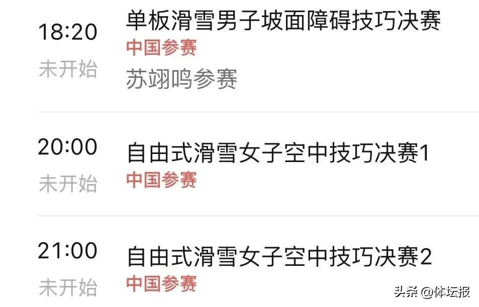 原計劃於17日進行的單板滑雪女子坡面障礙技巧決賽延期至18日,與男子坡障技巧決賽同一天進行。此前進行的男子坡障資格賽中,蘇翊鳴以第八名鎖定決賽席位。