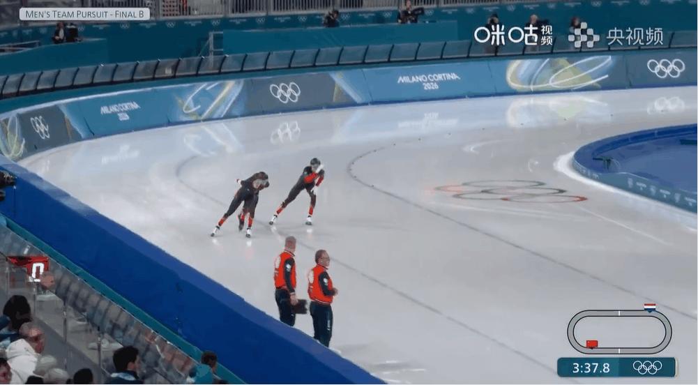 賽後,亮相決賽的劉瀚彬、吳宇和李文淏在冰面上緩緩滑行、平復呼吸,目光緊緊盯着場邊的大屏幕。儘管屏幕顯示荷蘭隊成績比中國隊慢0.09秒,但三名隊員卻沒有慶祝。