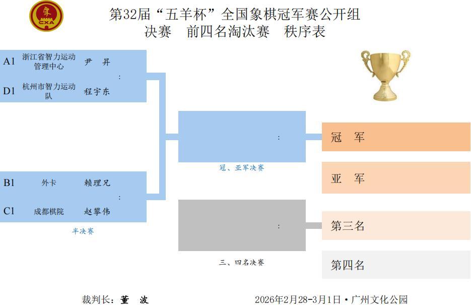 大賽28日下午兩點、晚上七點,進行本次五羊杯公開組分先兩局四強半決賽豪力大戰,以及元老組第四輪,誰能豪取勝出,勇進決賽,衝擊冠軍王座巔峯王冠和110萬鉅獎,三十萬冠軍大獎,象棋王子也將繼續進行全程的直播和報道(抖音:象棋王子),敬請關注、支持、守護,謝謝!