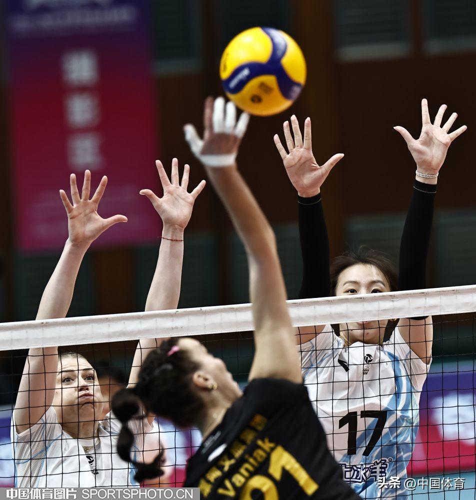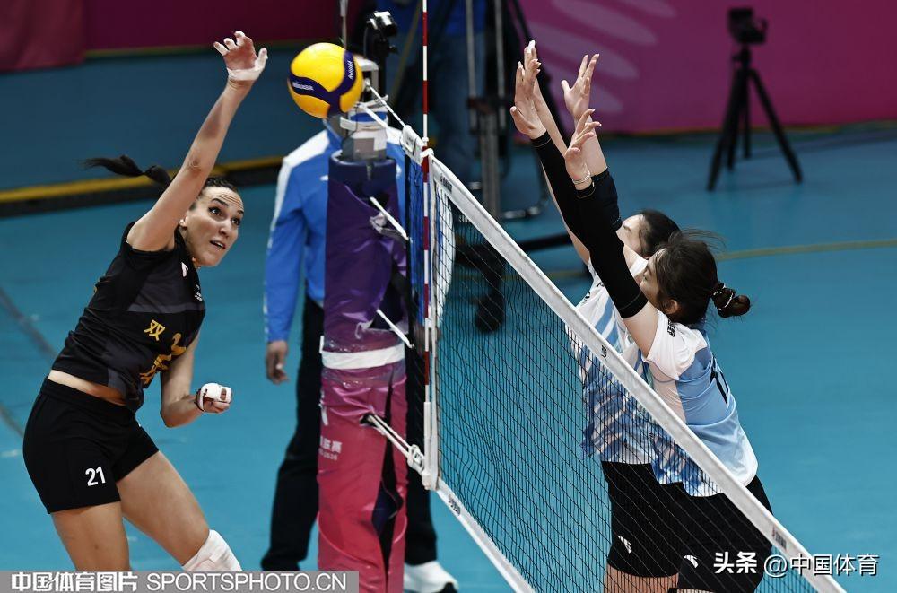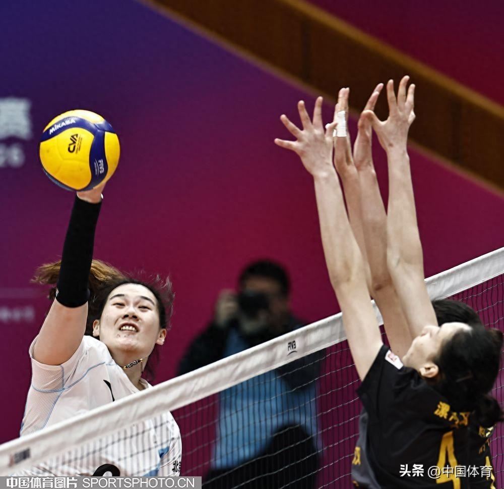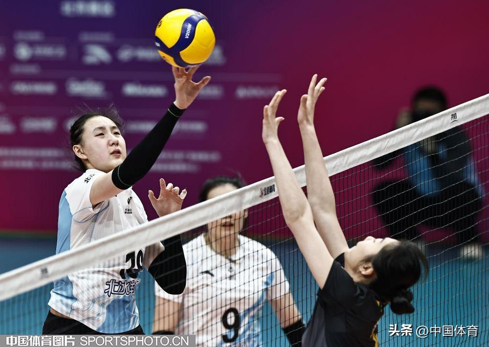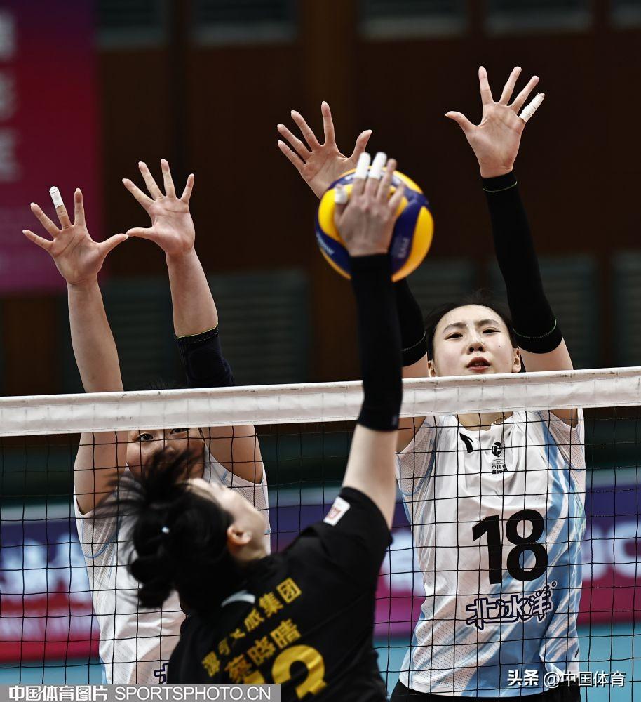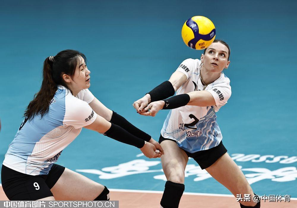 北京北冰洋隊薩曼塔·法布里斯、金佳寶(右)攔網